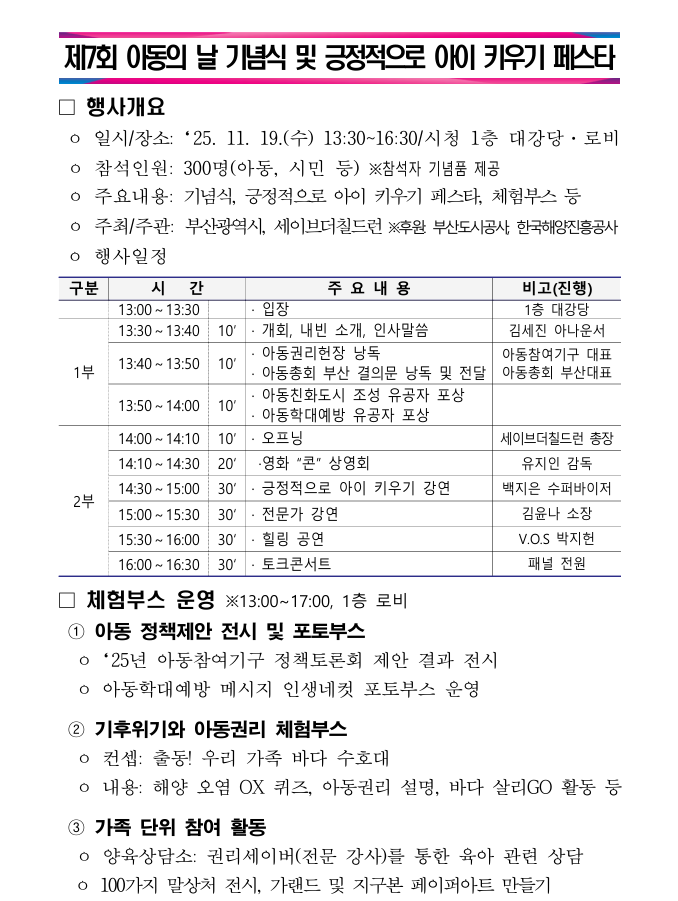 제7회 아동의 날 기념식 및 긍정적으로 아이 키우기 페스타