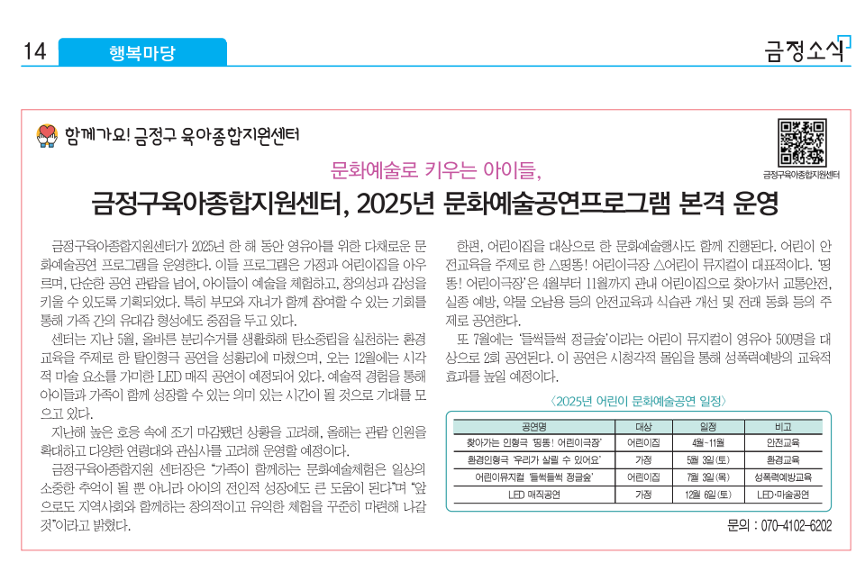 (금정소식 6월호) 2025년 문화예술공연프로그램 본격운영