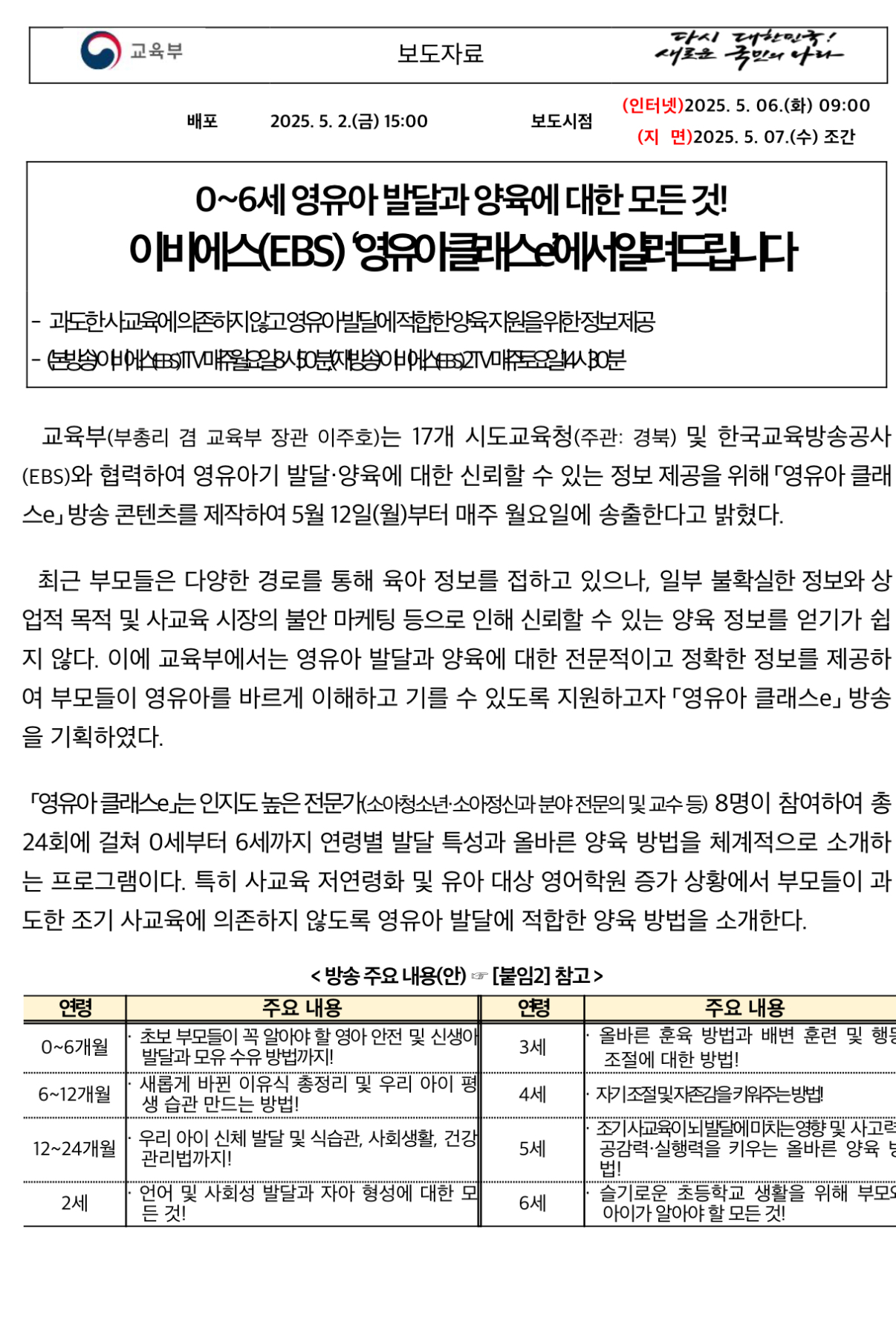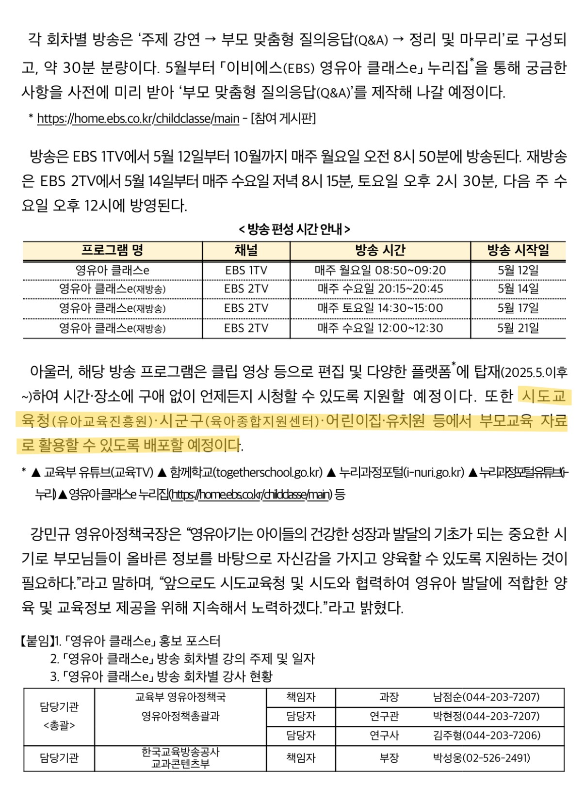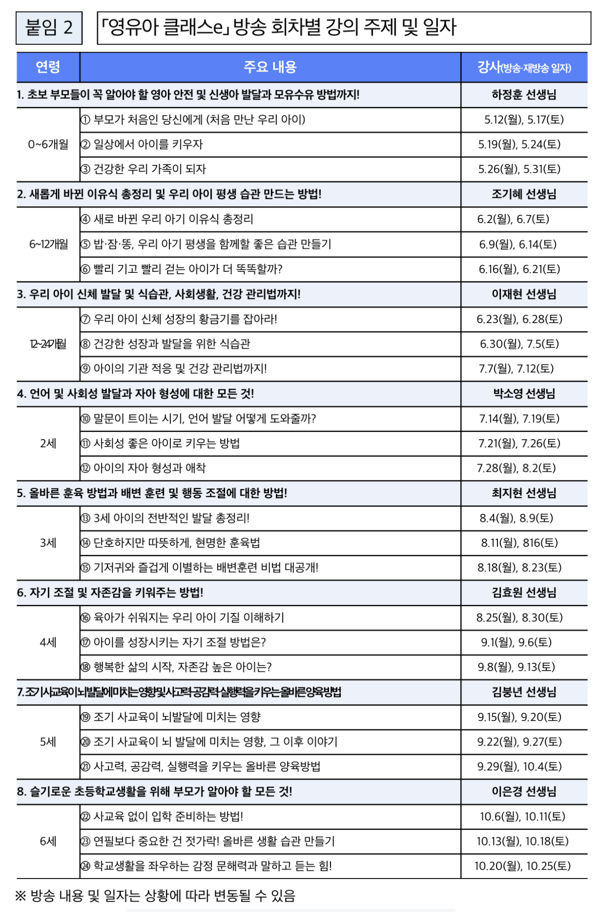 EBS1TV 신생아부터 6세까지 발달과 양육에 대한 모든 것 「영유아 클래스e」 방송 안내
