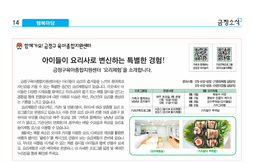 (금정소식 8월호) 아이들이 요리사로 변신하는 특별한 경험!