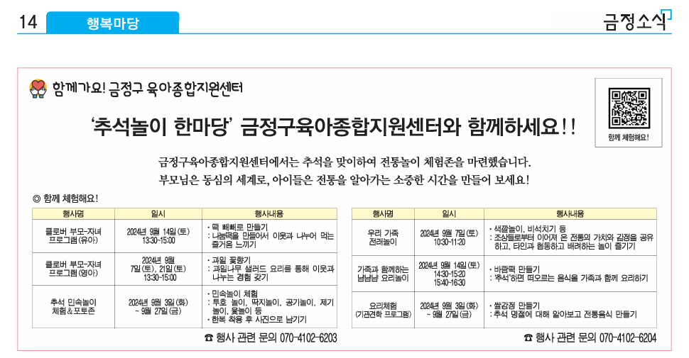 (금정소식 9월호) '추석놀이 한마당' 금정구육아종합지원센터와 함께하세요!!