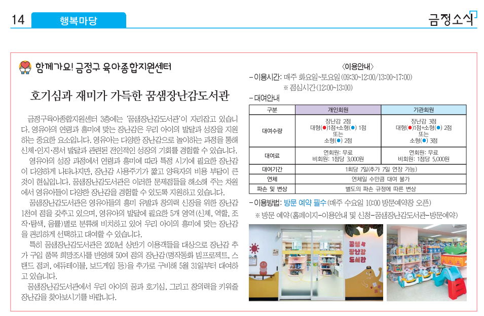 (금정소식 6월호) 호기심과 재미가 가득한 꿈샘장난감도서관