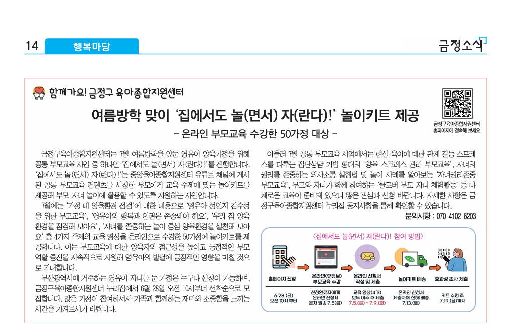 (금정소식 7월호) 여름방학 맞이 '집에서도 놀(면서) 자(란다)!' 놀이키트 제공
