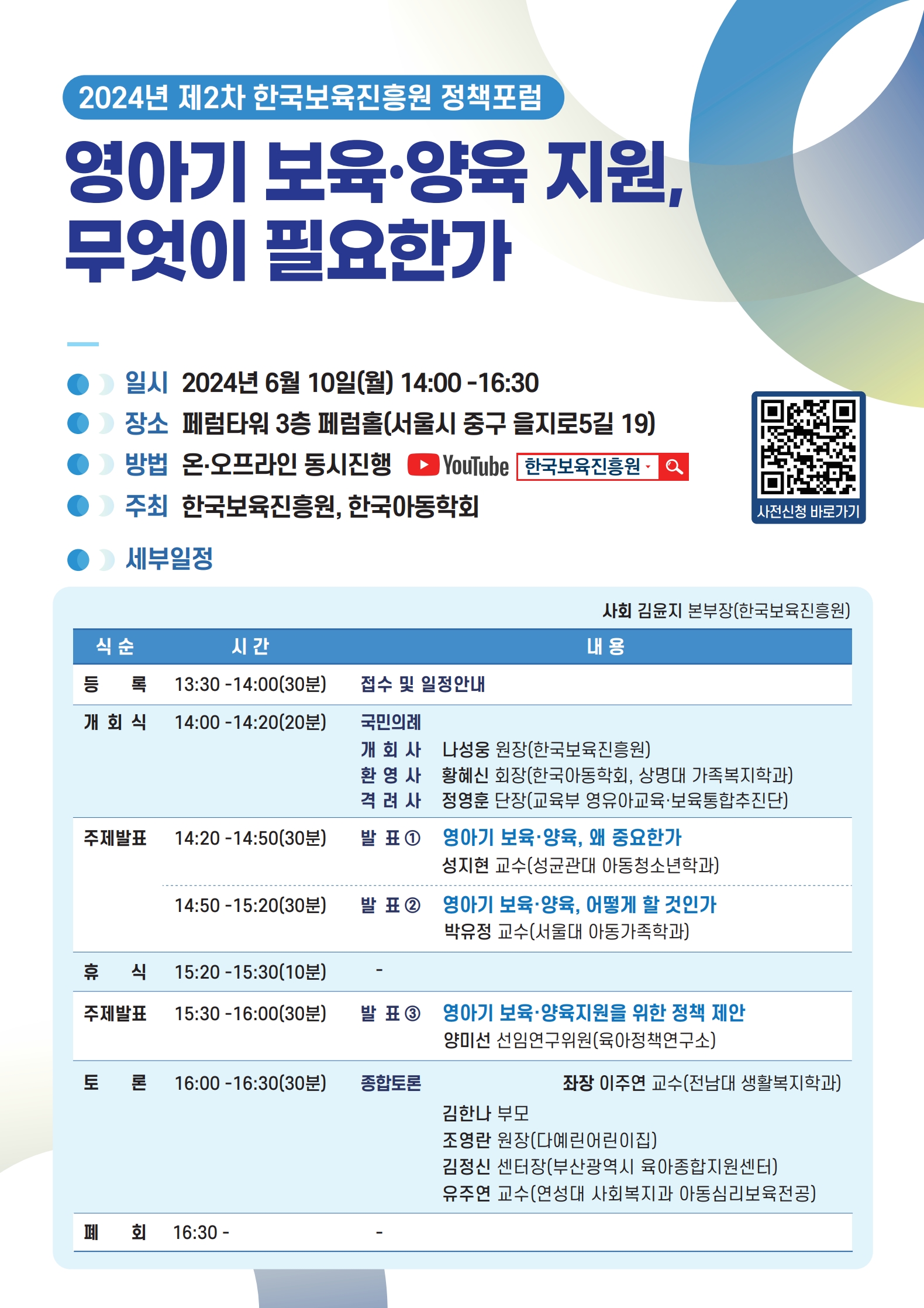 개최방식 : 온·오프라인 동시 진행(오프라인 : 페럼타워 3층 페럼홀 / 온라인 : 한국보육진흥원 유튜브 채널)