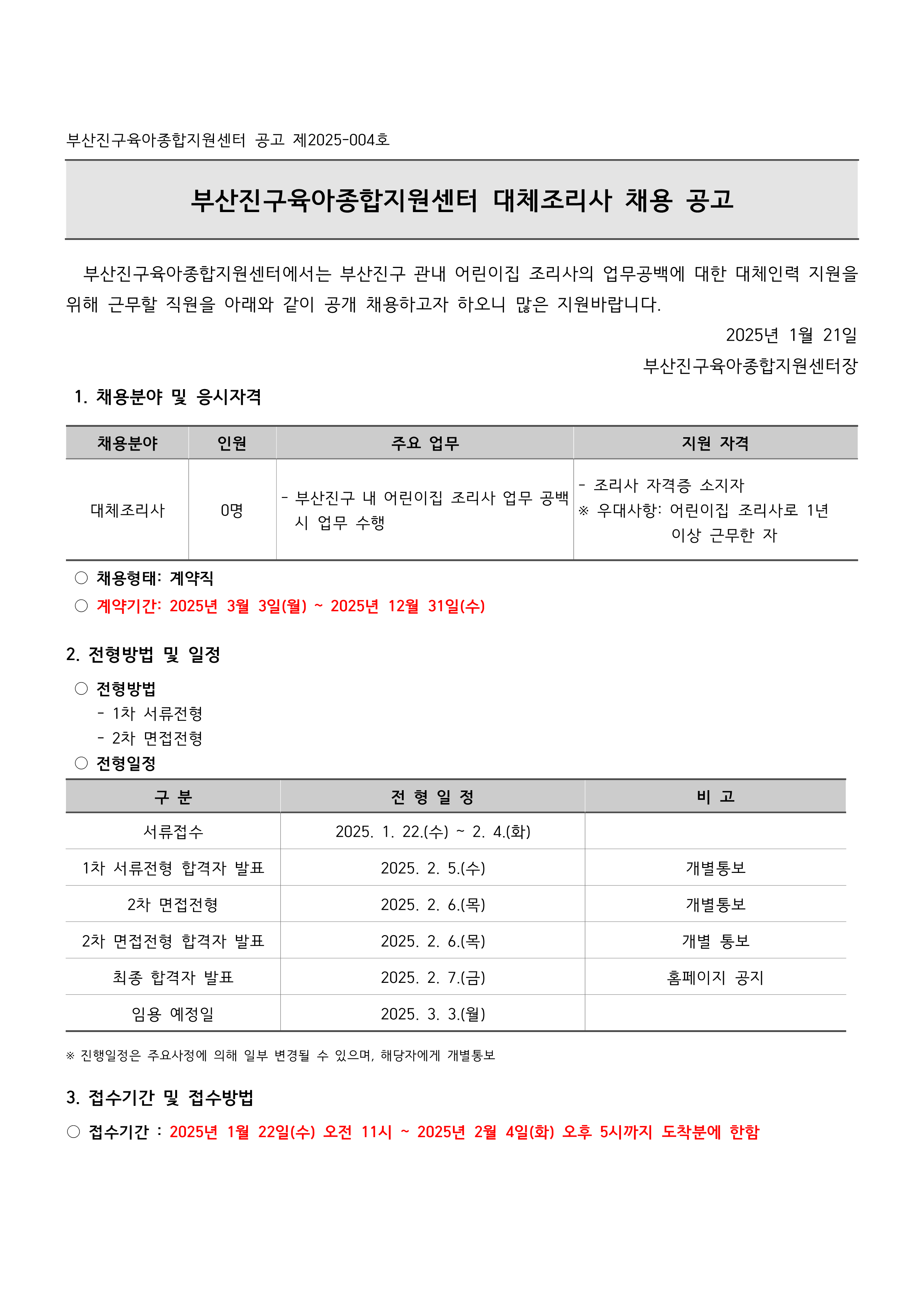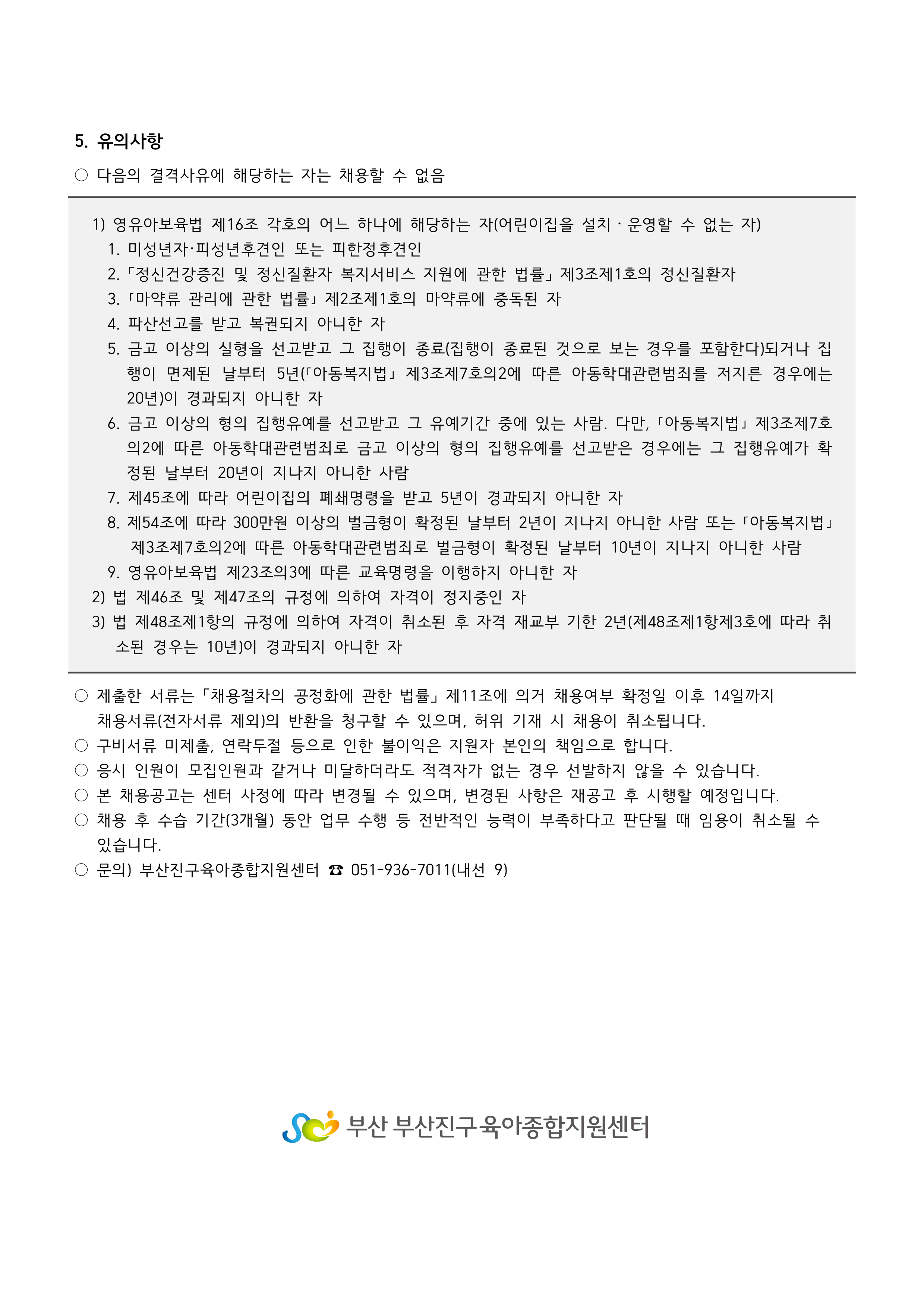 금정구육아종합지원센터 직원(운영요원) 채용공고