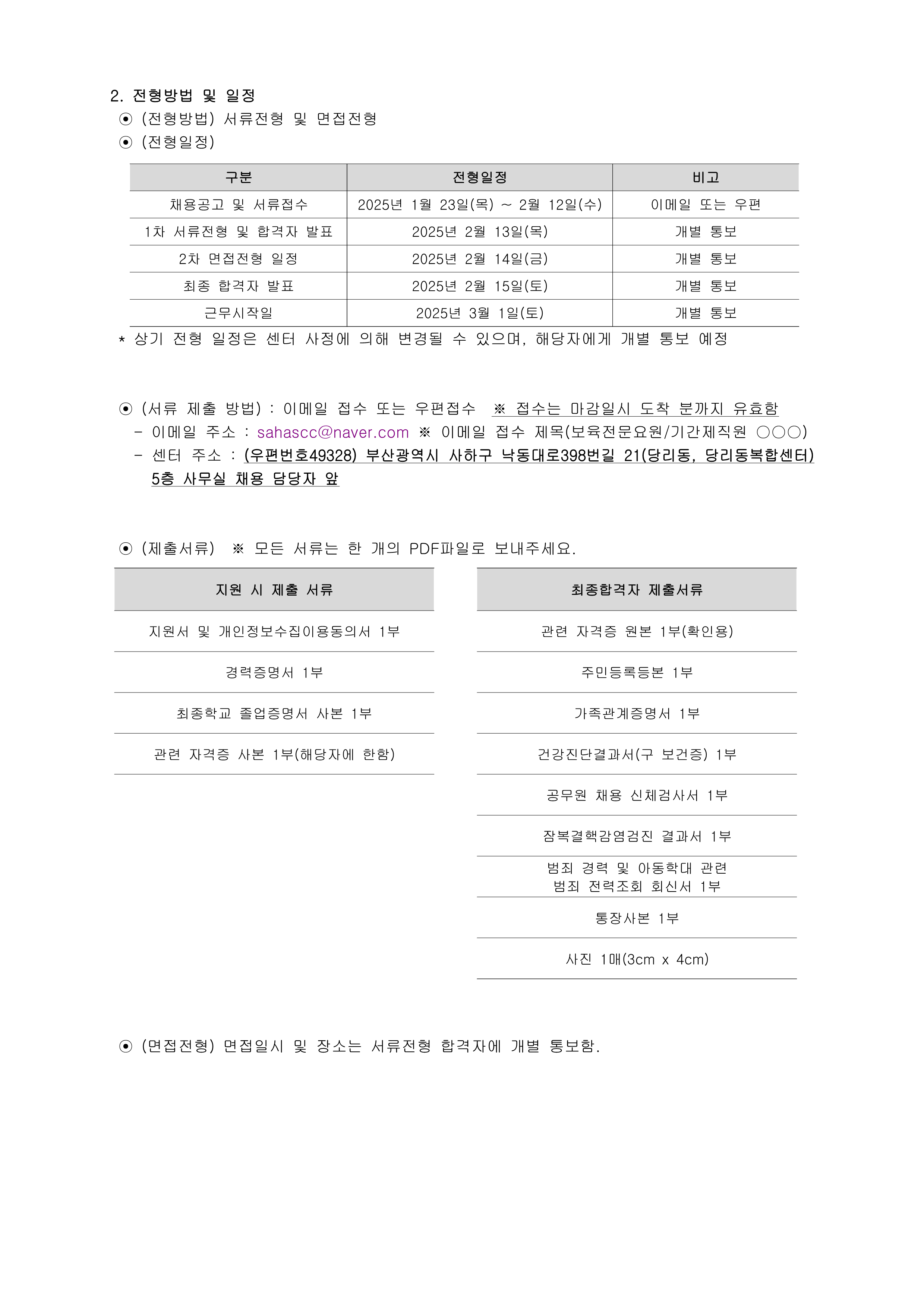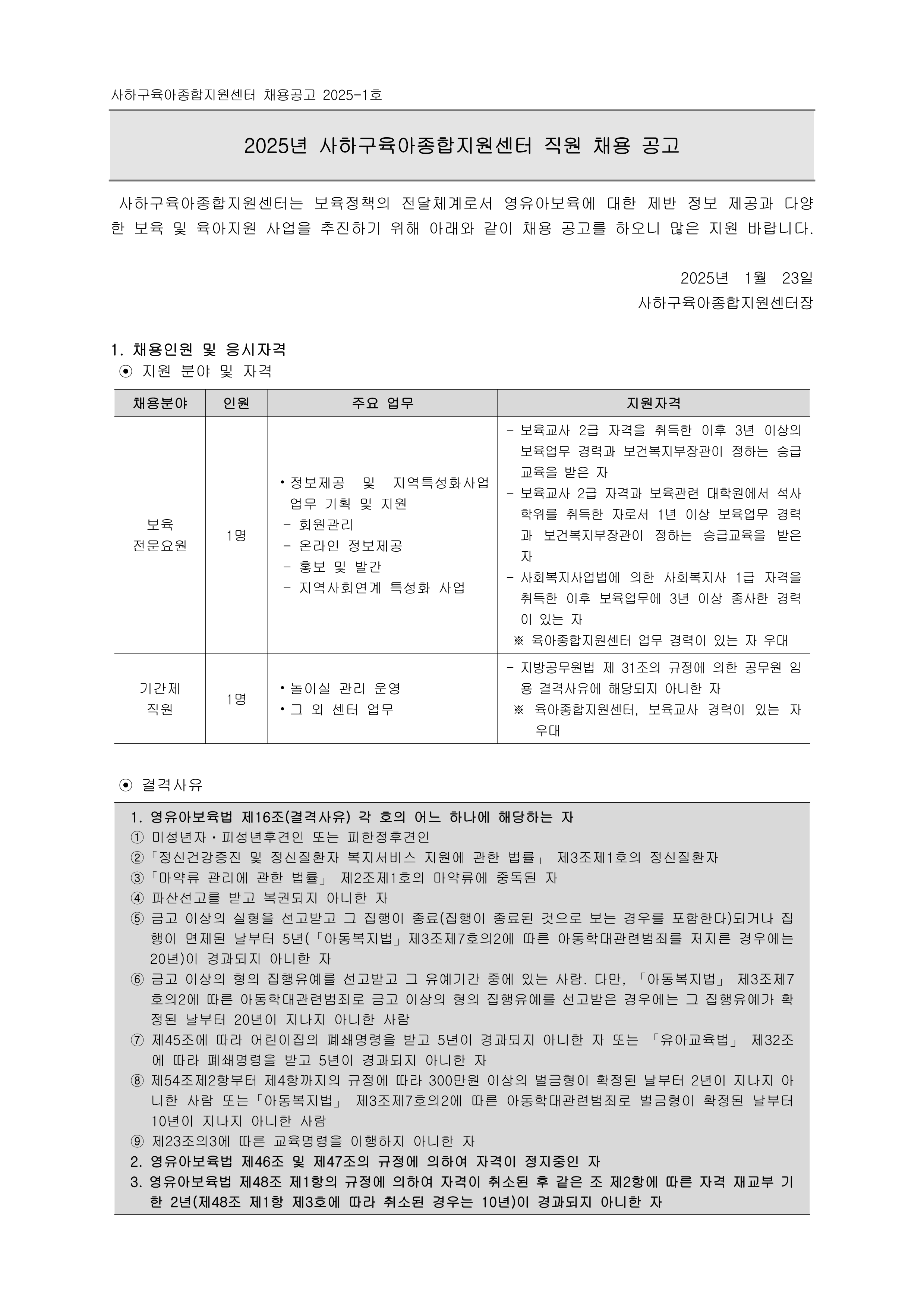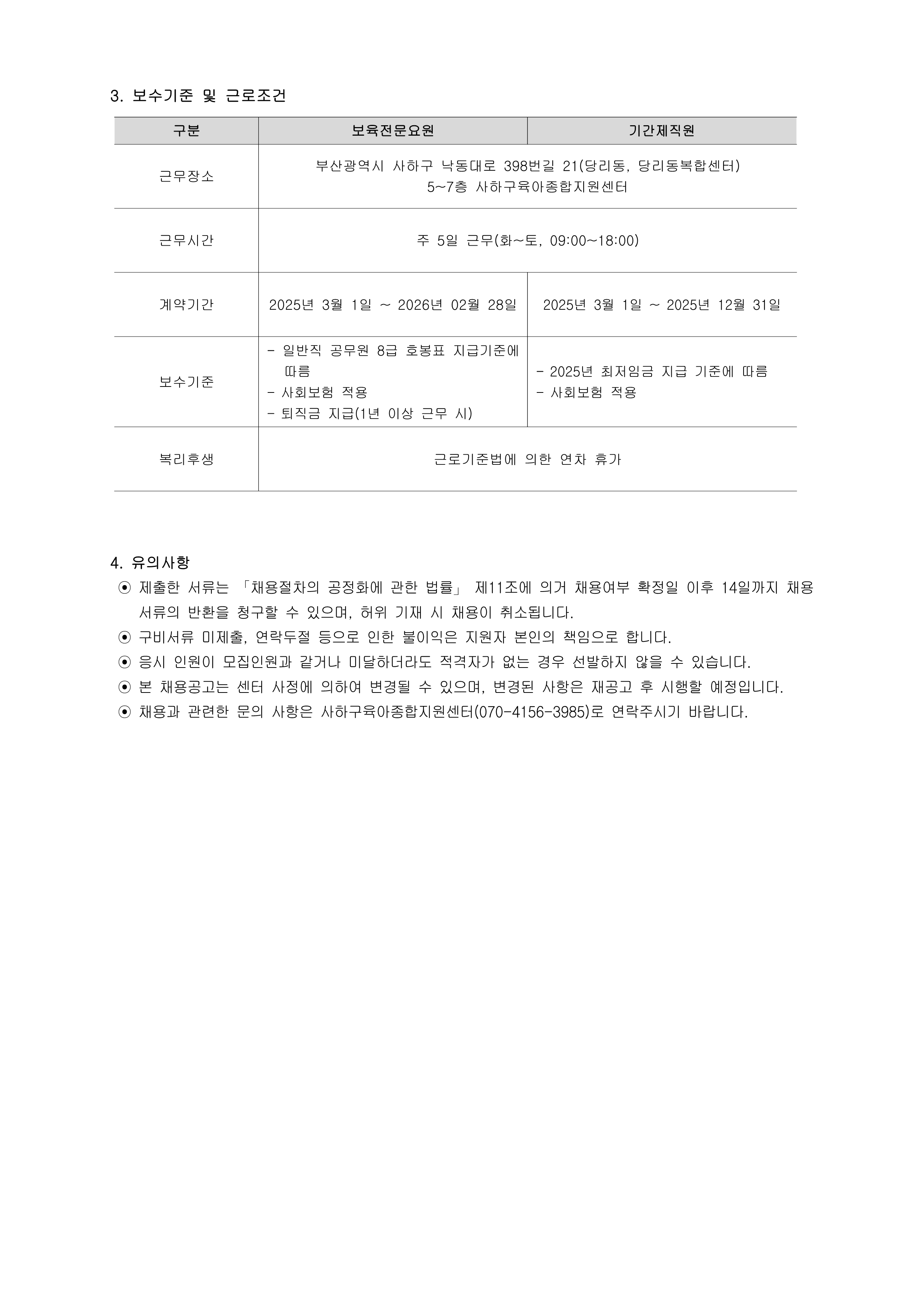 [사하구육종합지원센터] 직원 채용 공고