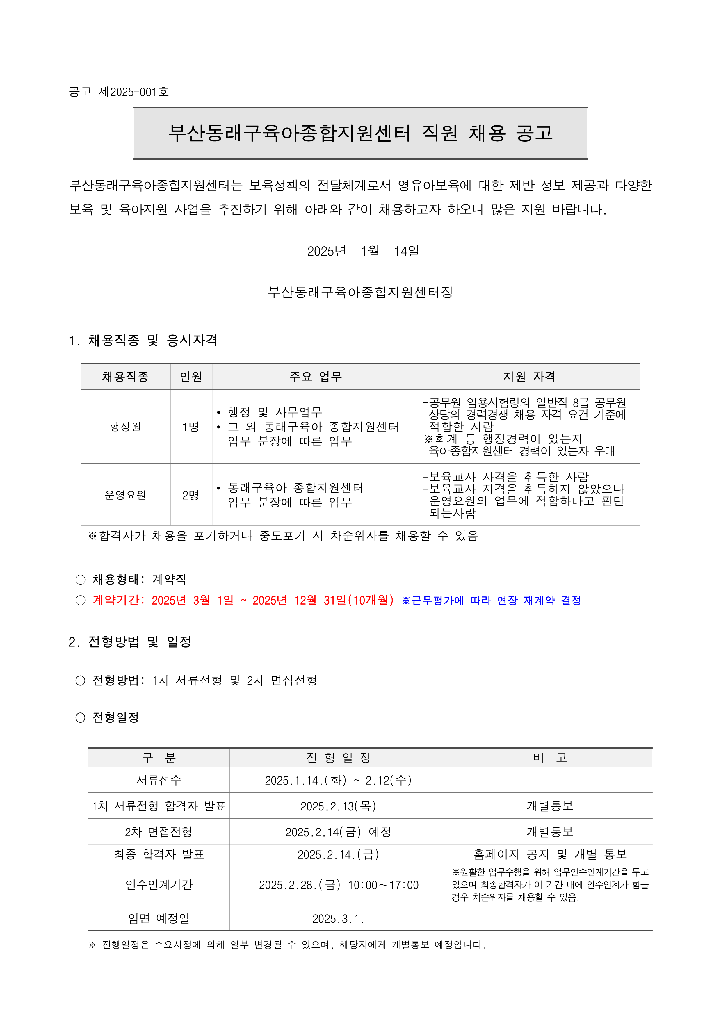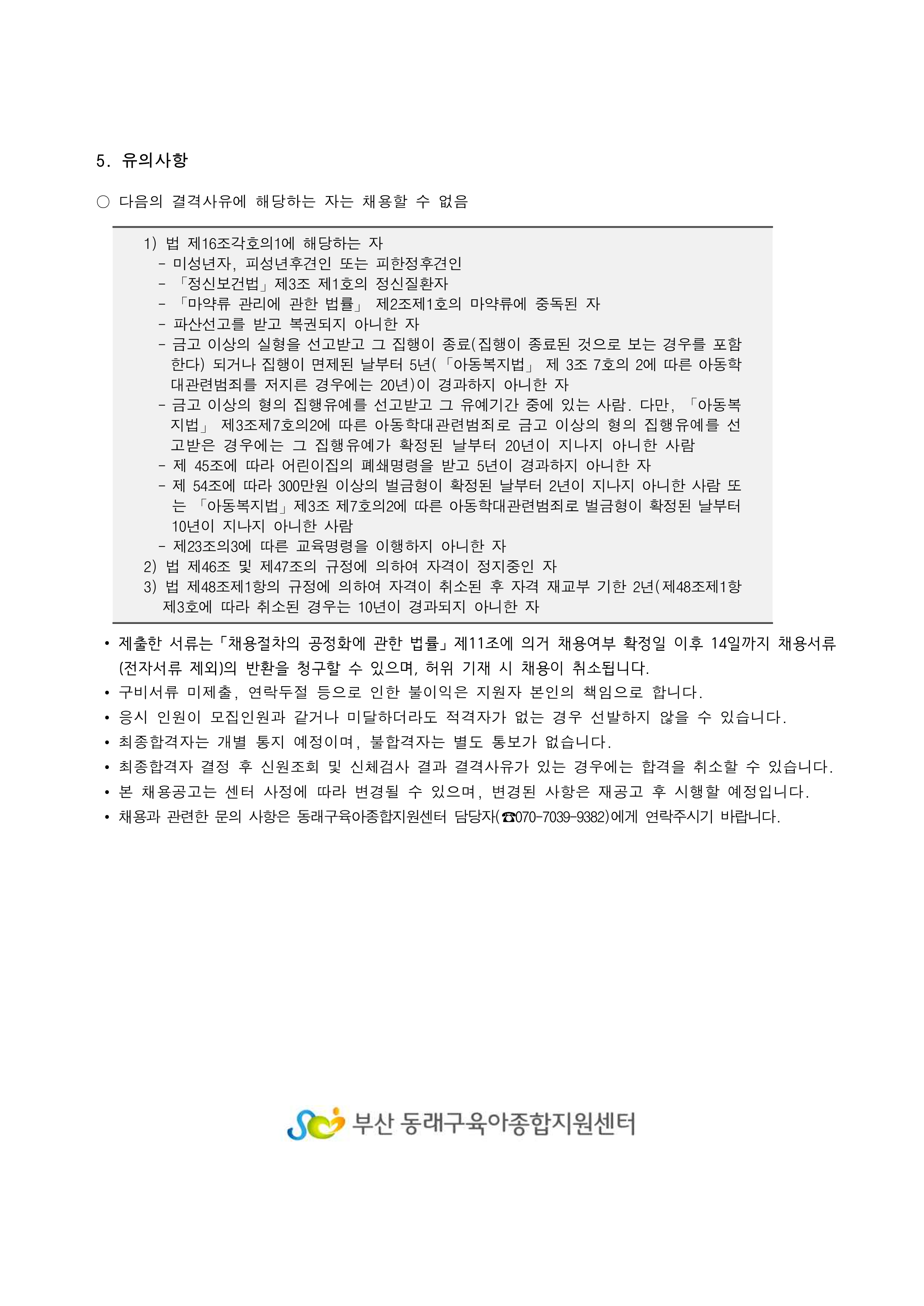 [사상구육종합지원센터] 대체조리사 채용 공고