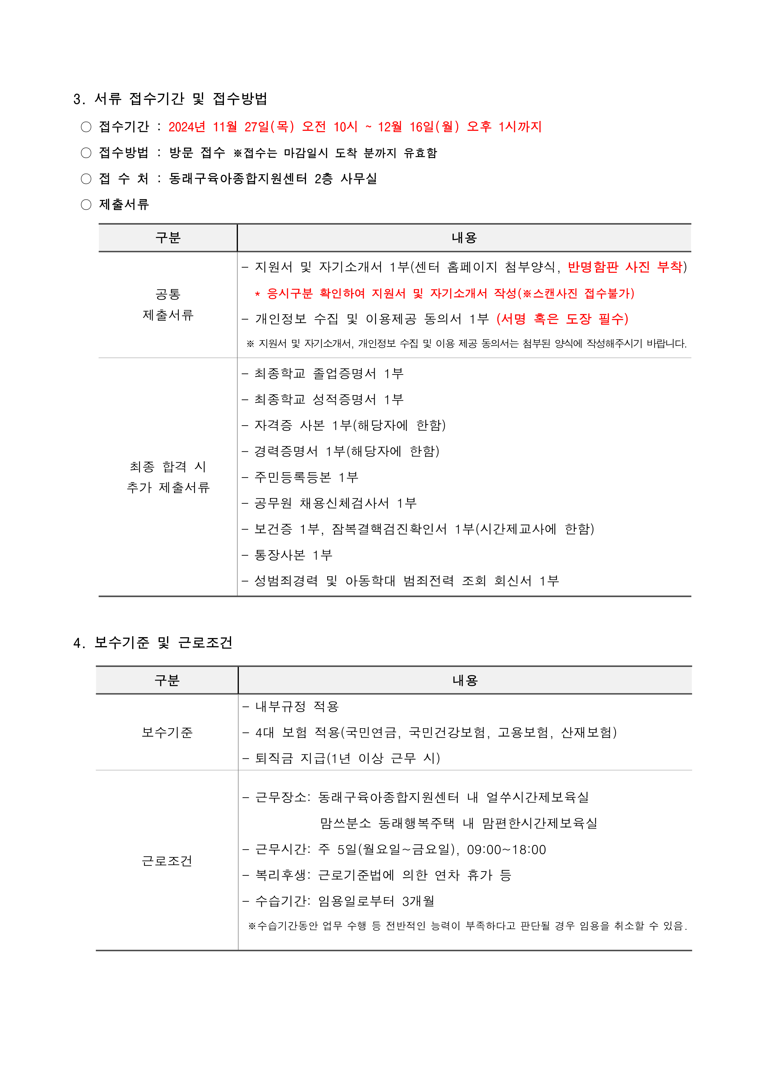 (동래구육아종합지원센터) 입사지원서,자기소개서,개인정보수집및이용동의서.hwp