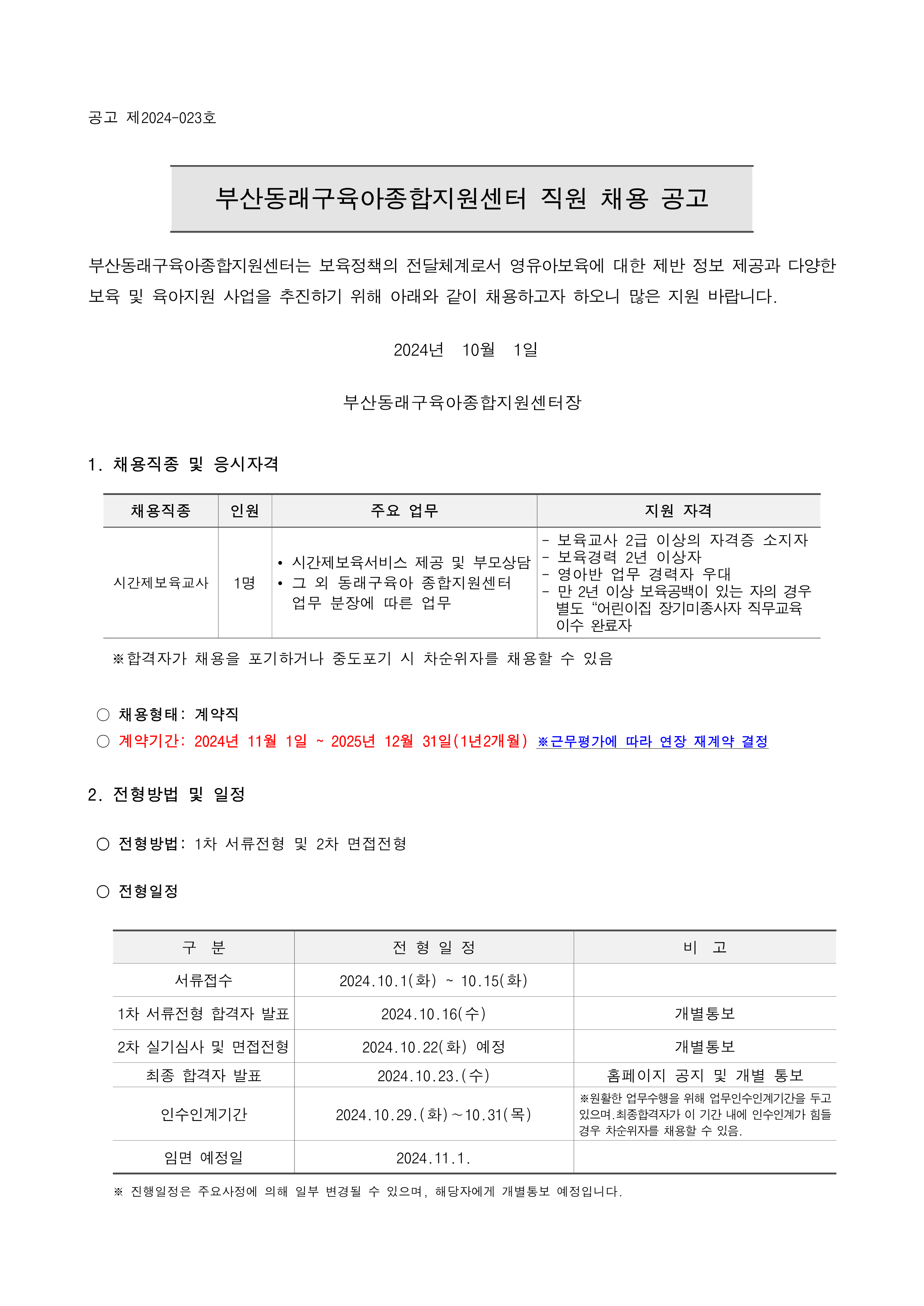[부산광역시육종합지원센터] 대체교사 채용 공고