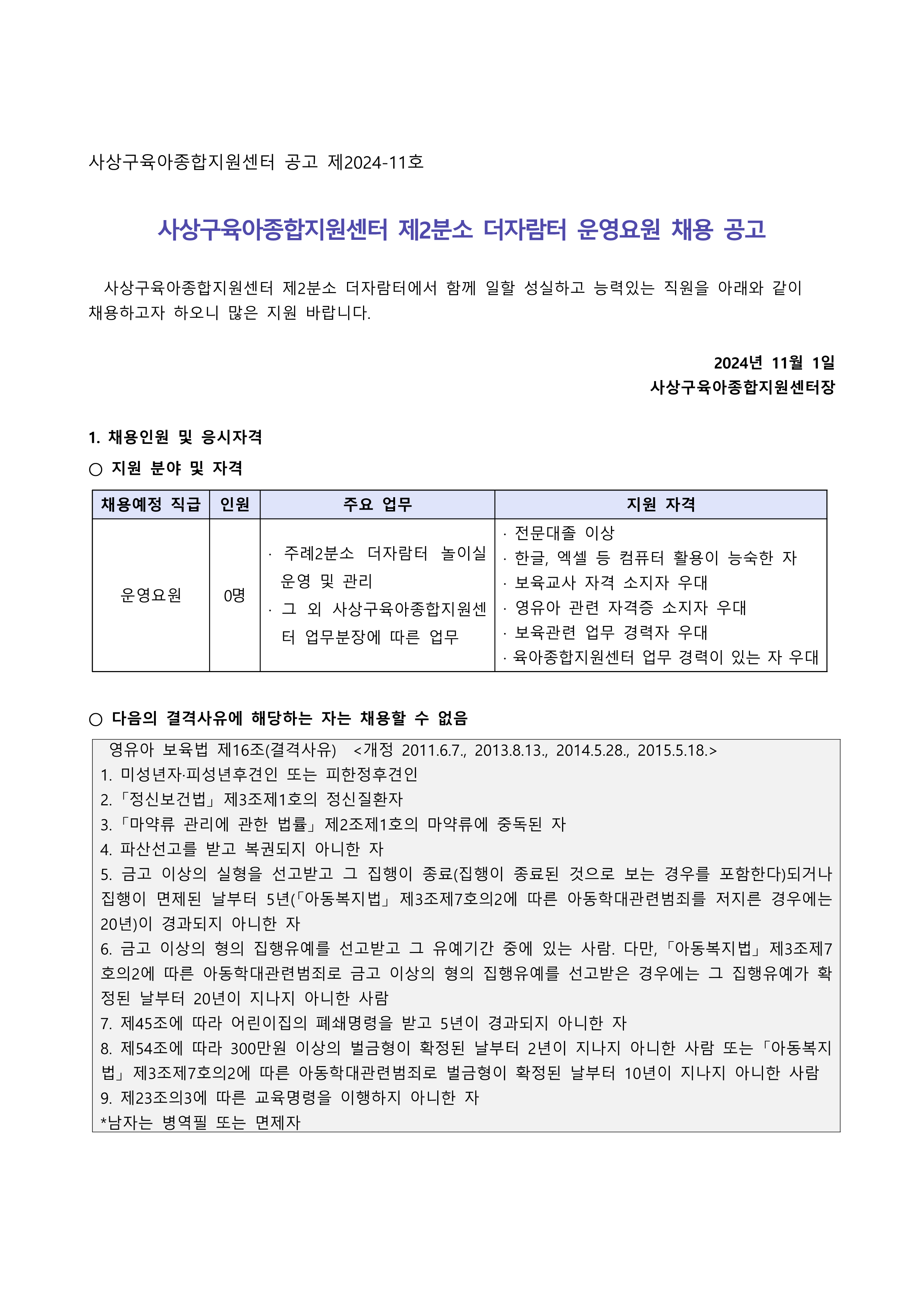 구인(어린이집)