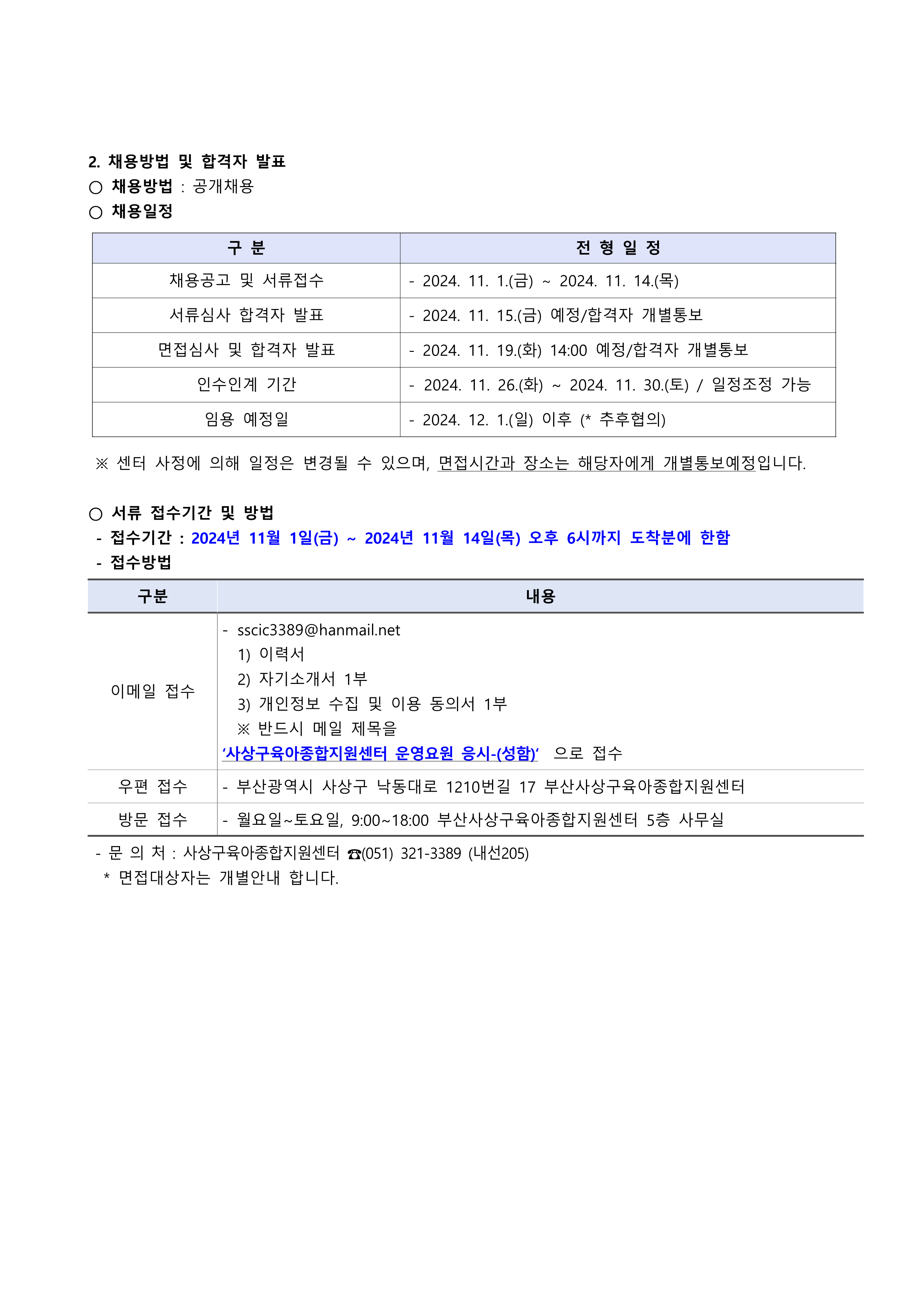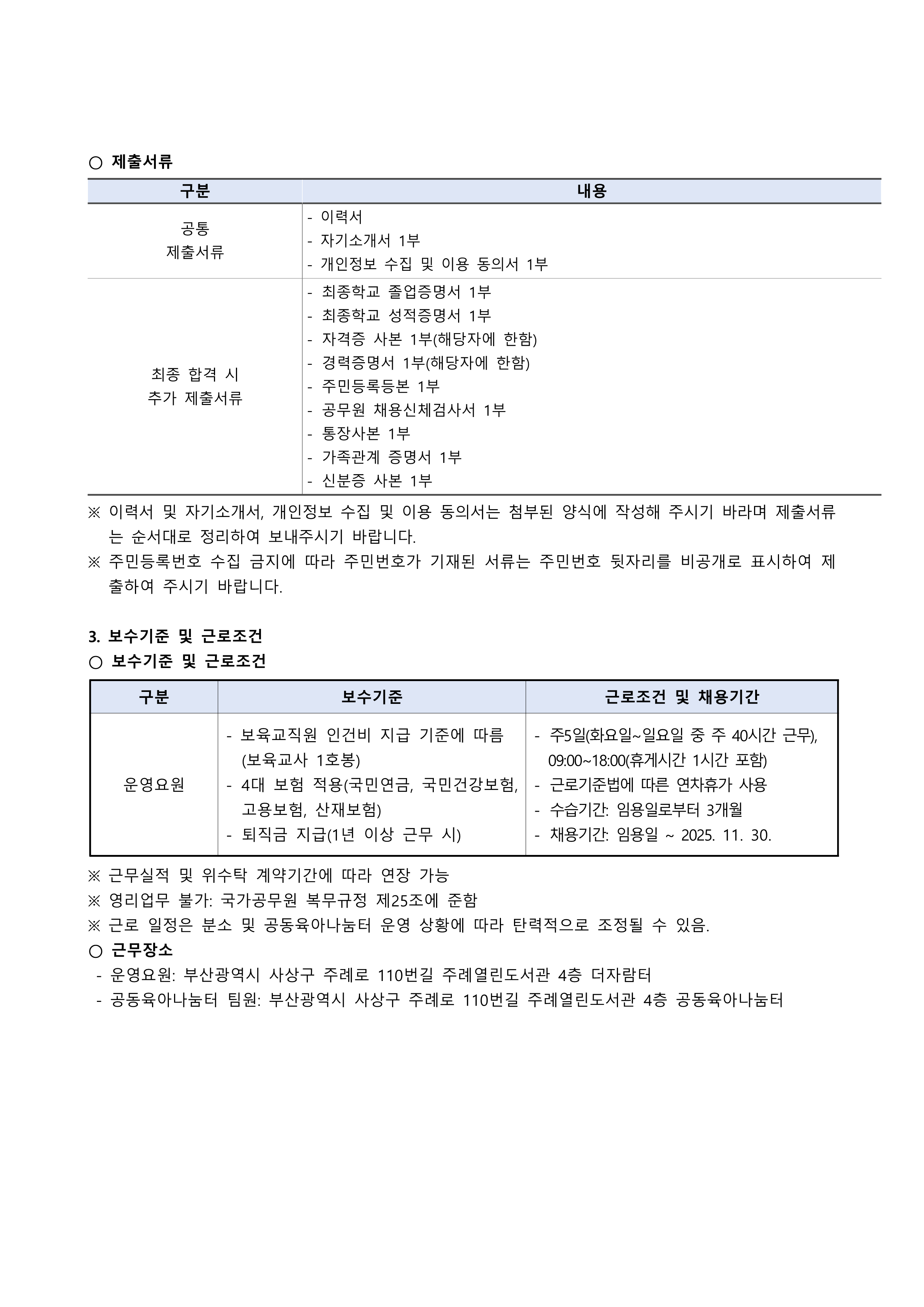 [사상구육아종합지원센터] 제2분소 더자람터 운영요원 채용 공고