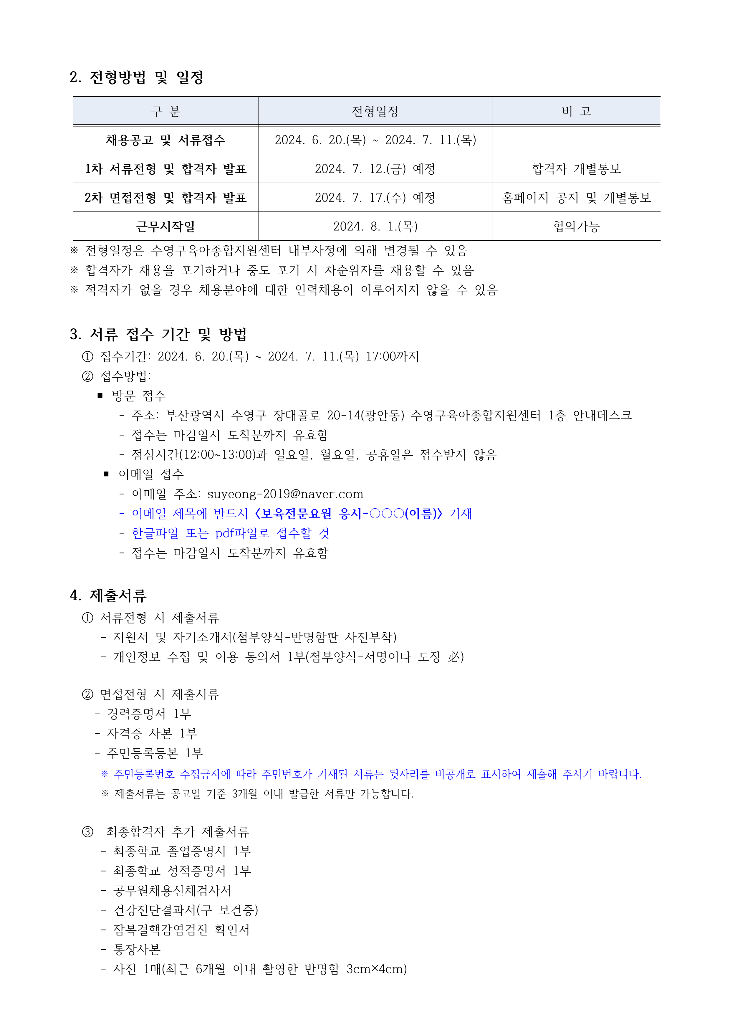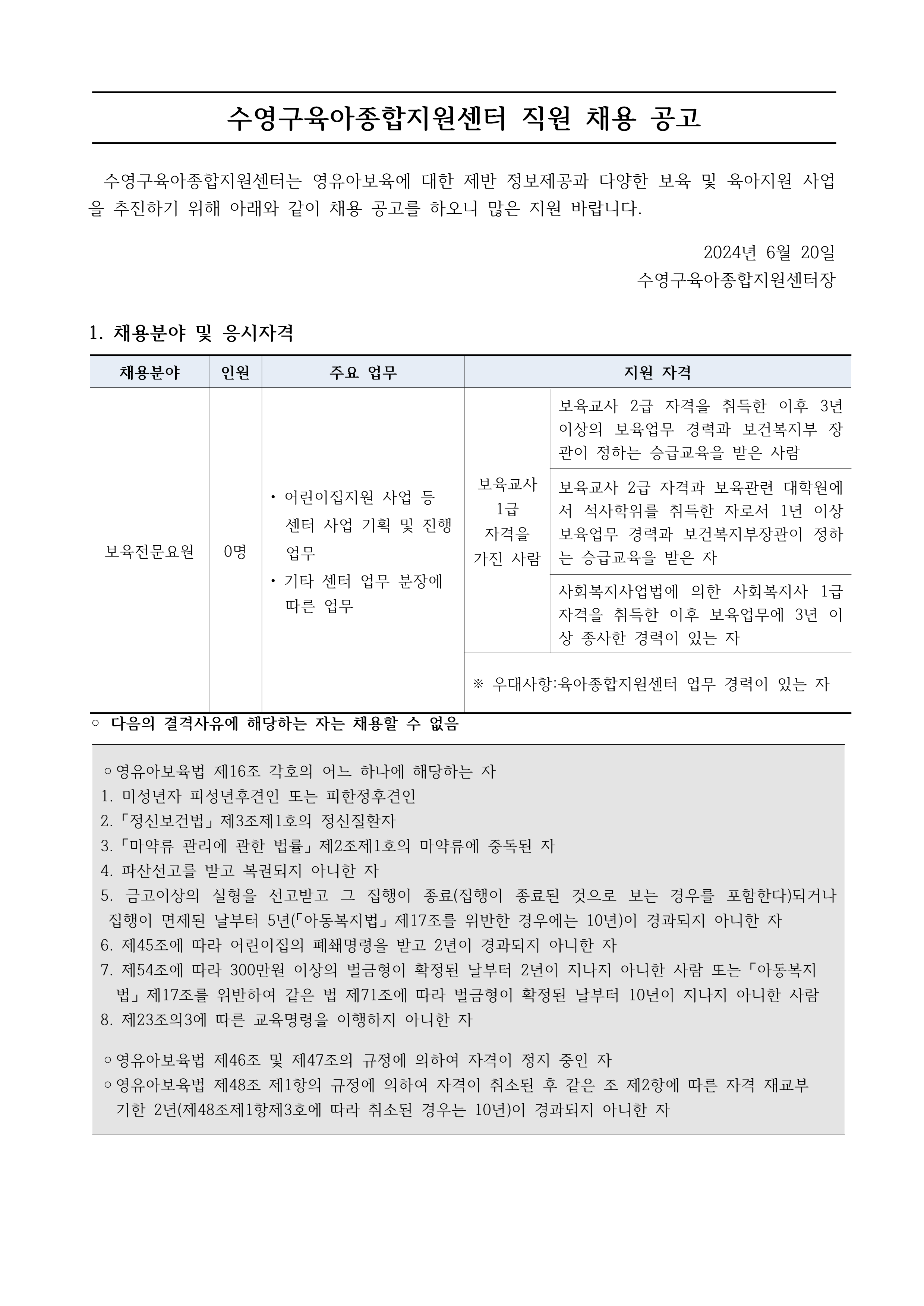 [수영구육아종합지원센터] 직원 채용 공고