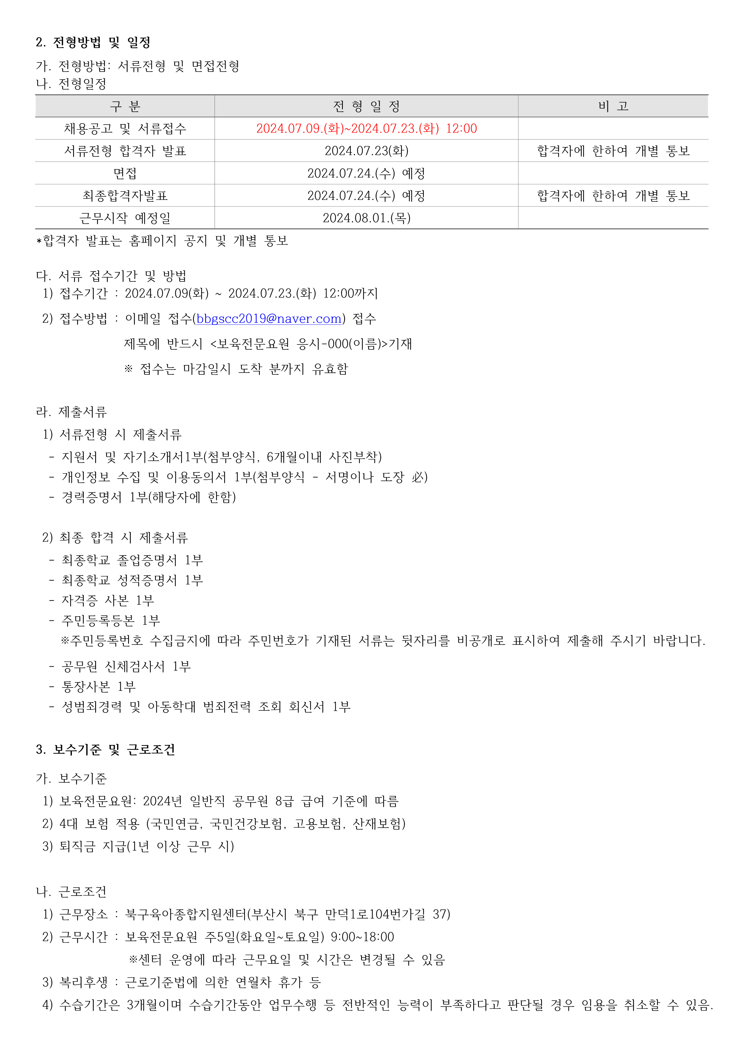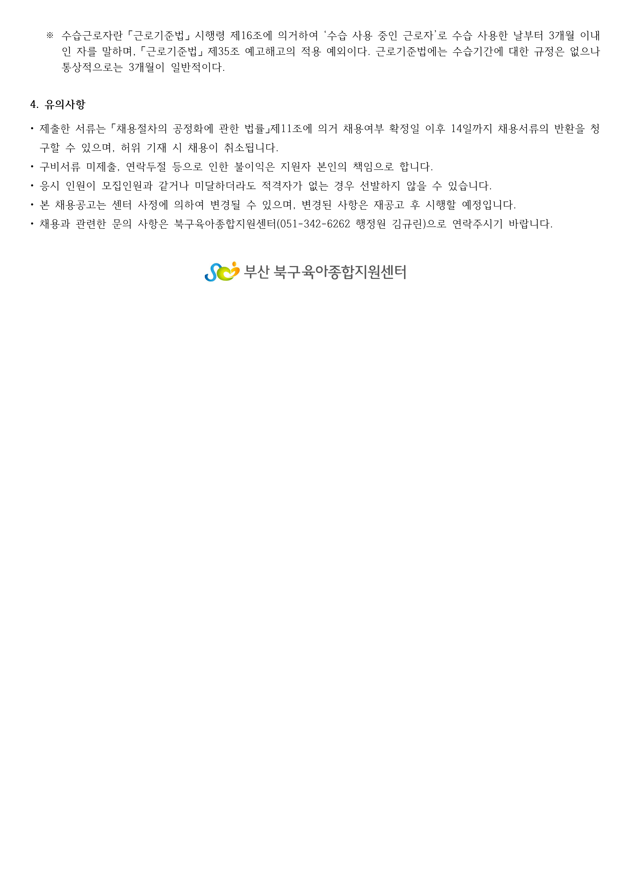 [사하구육종합지원센터] 직원(초단시간근로자) 채용 공고