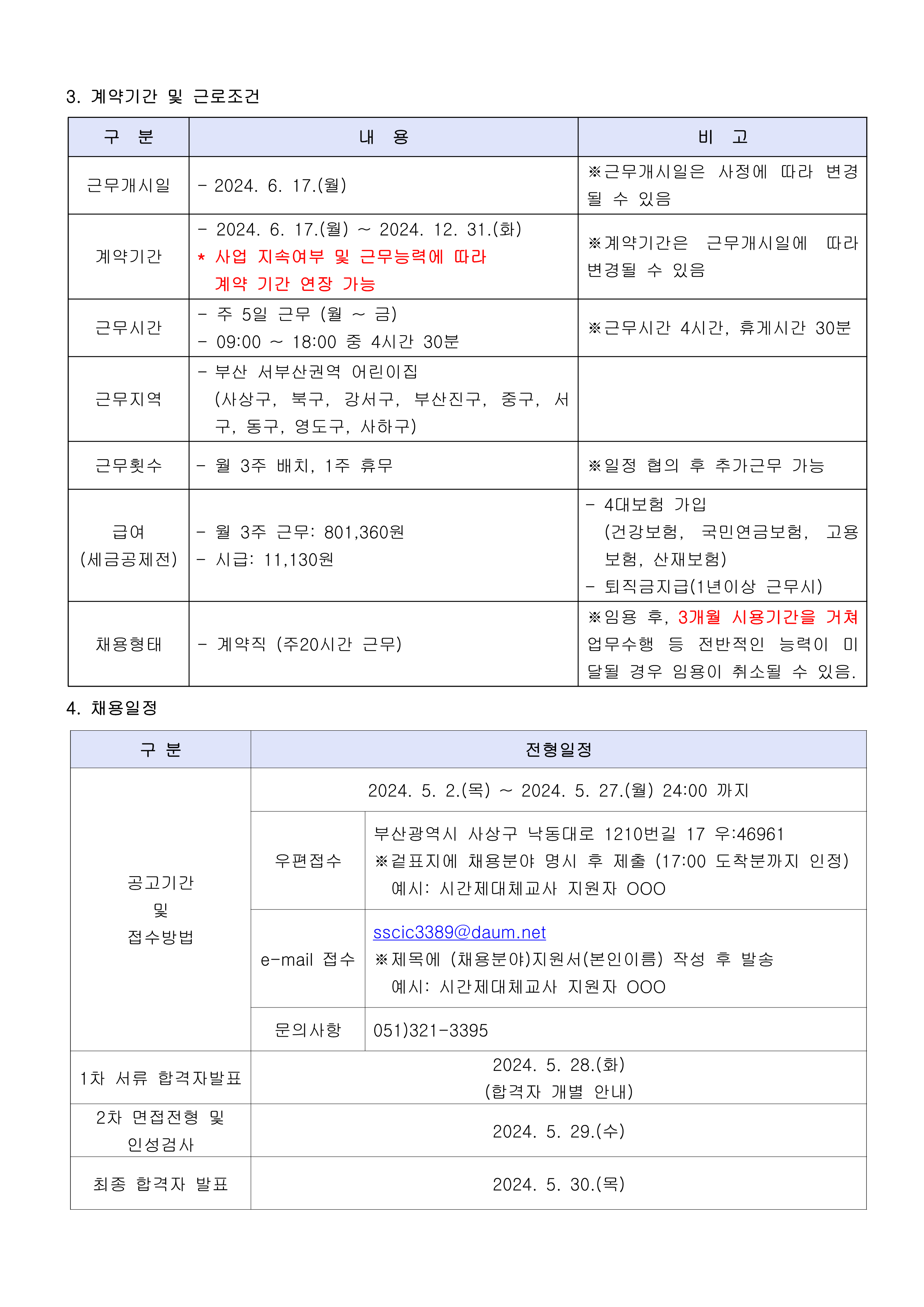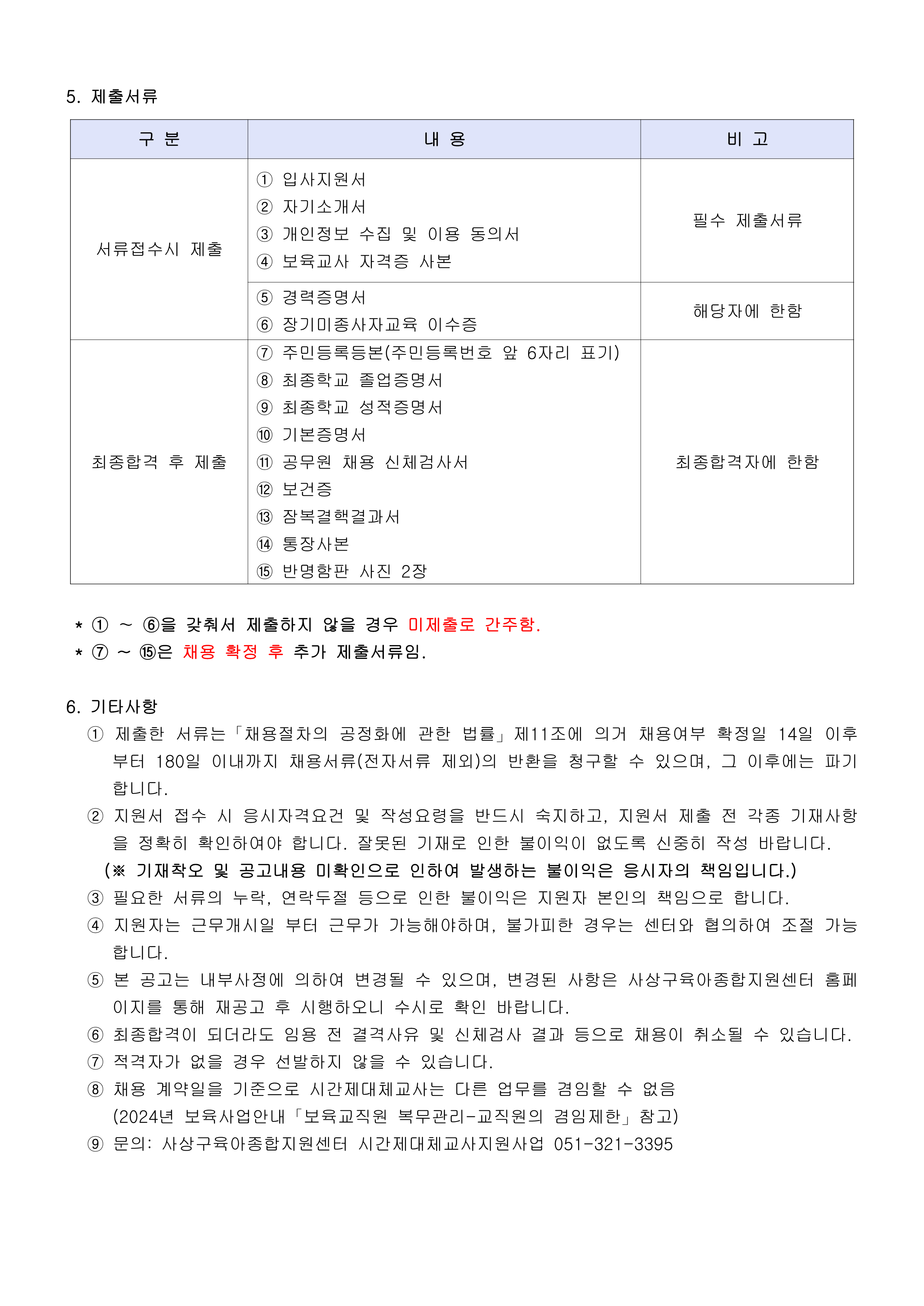[부산광역시육아종합지원센터] 2024년 대체교사관리자(출산전후휴가 및 육아휴직 대체) 인력 채용 공고
