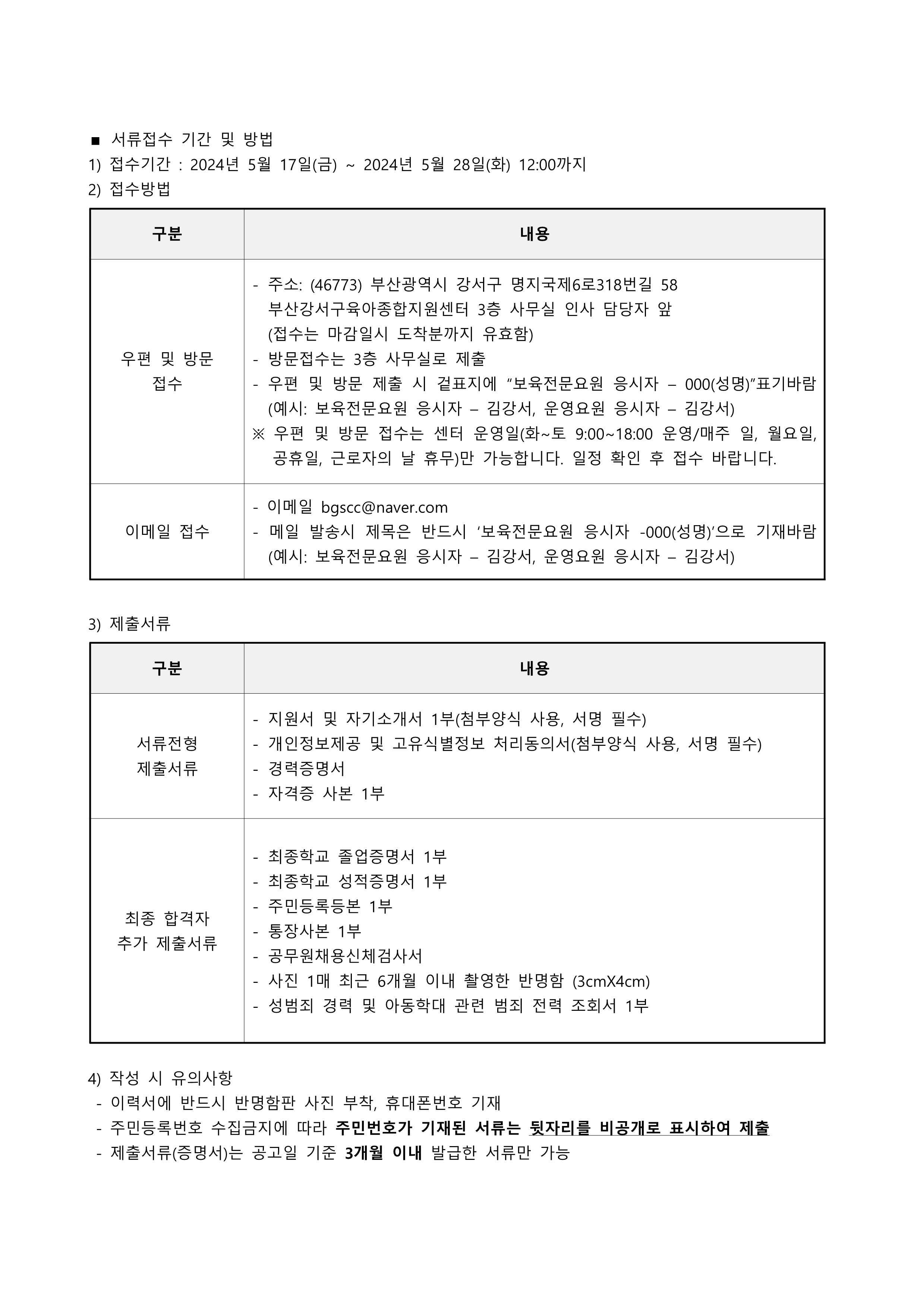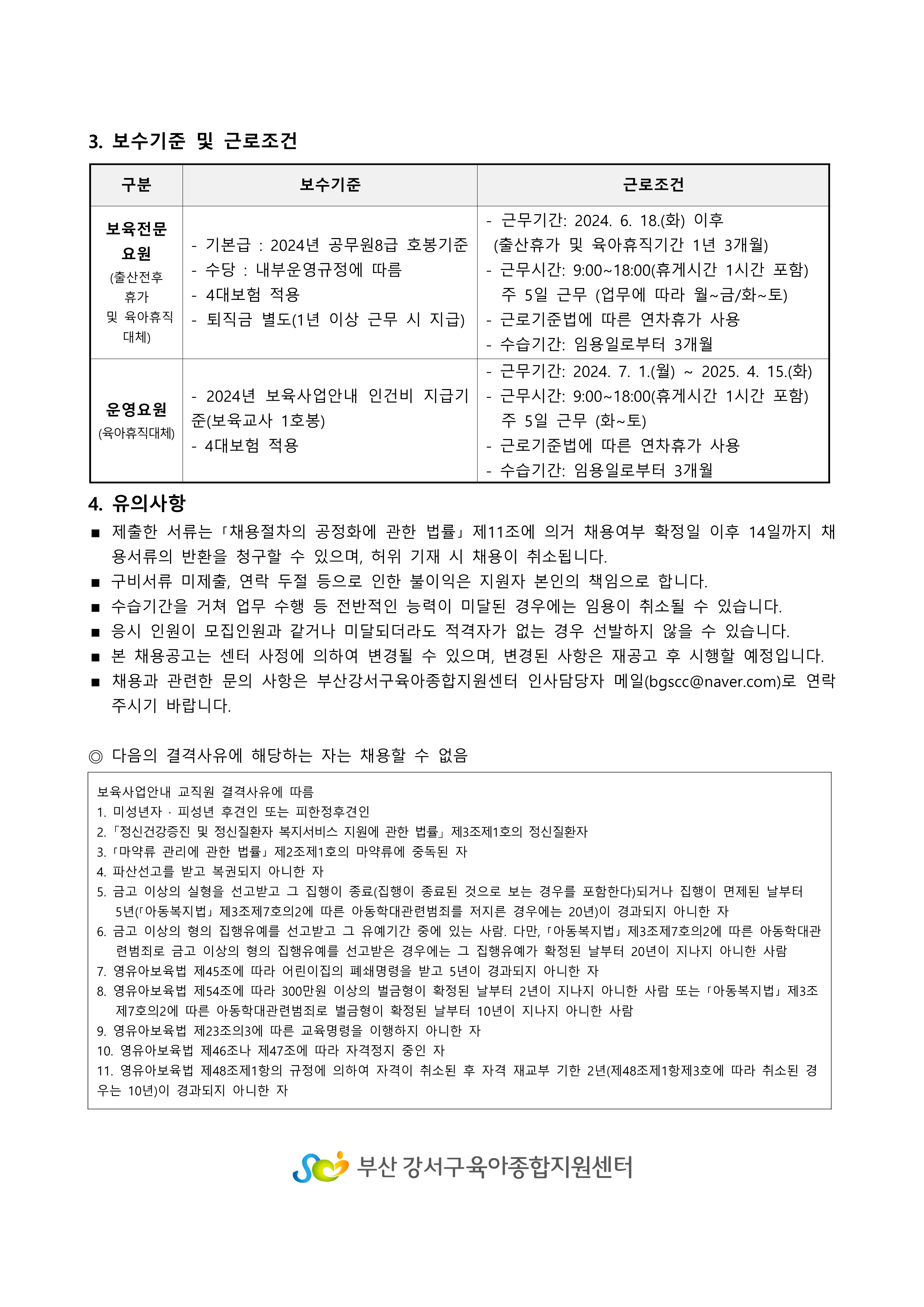 [사하구육아종합지원센터] 직원(운영요원,보육전문요원,행정원) 채용 공고