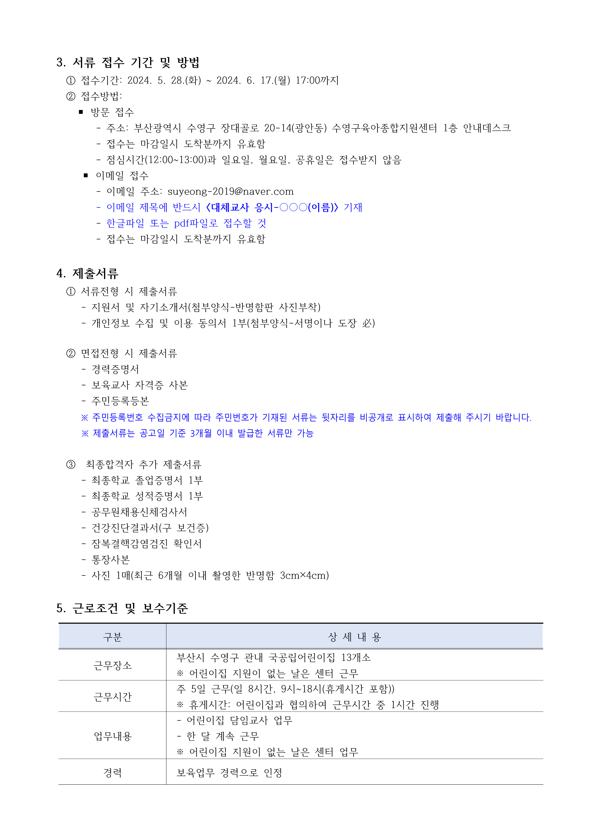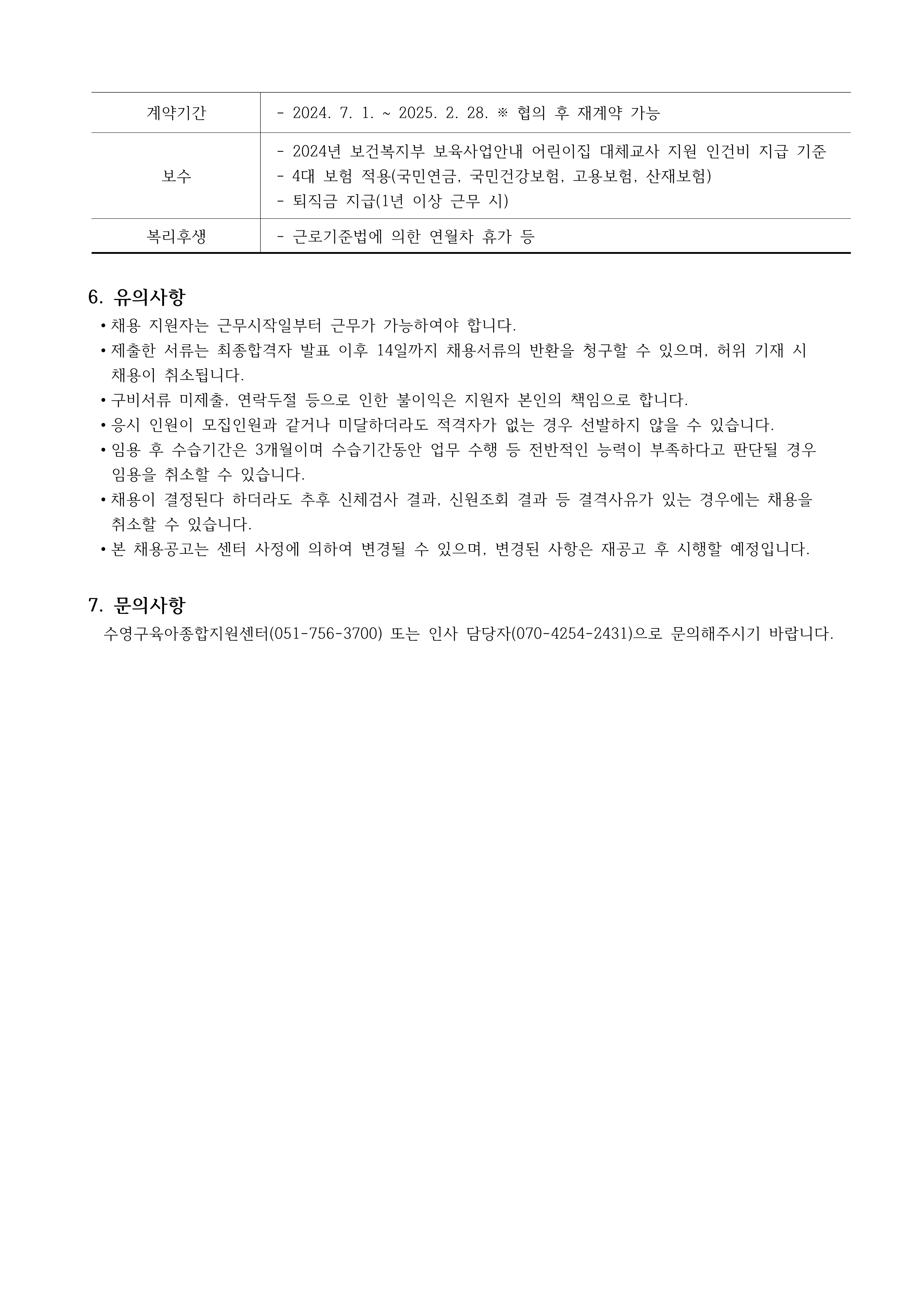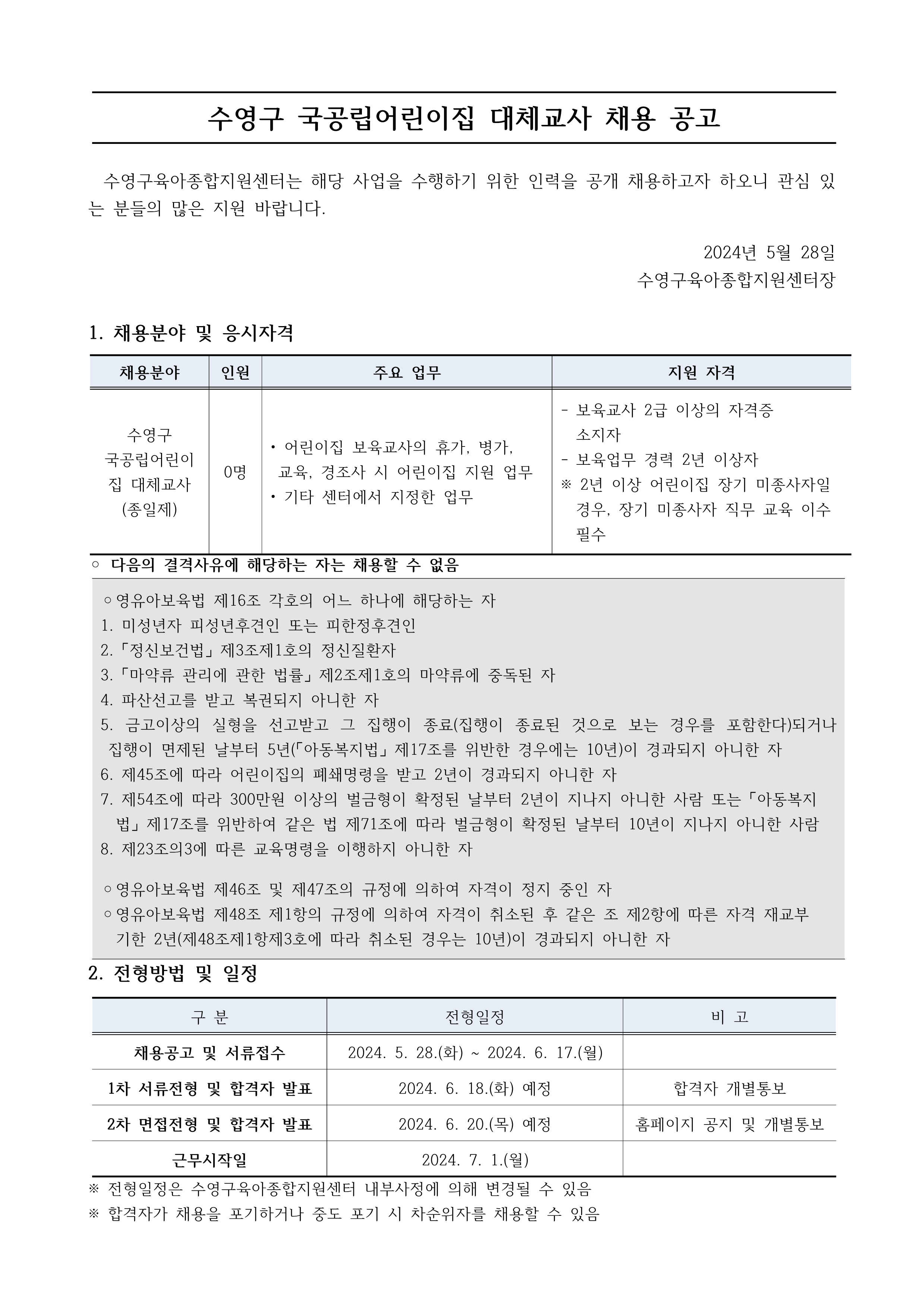 [수영구육아종합지원센터] 수영구 국공립어린이집 대체교사 채용 공고