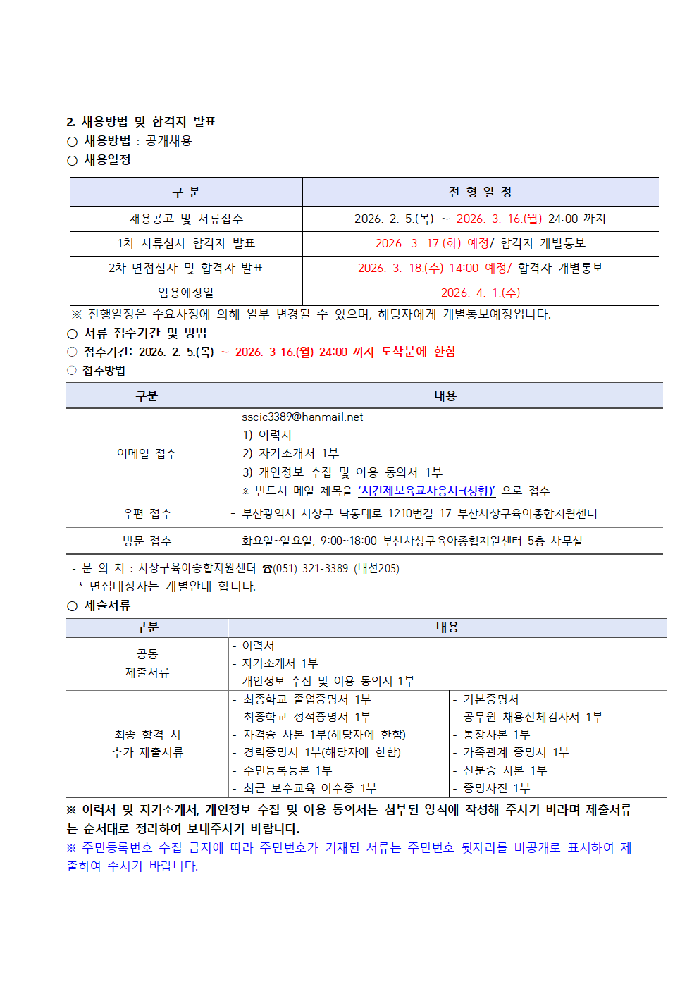 [사하구육아종합지원센터] 직원(시간제보육교사, 운영요원) 채용 공고(기간수정)