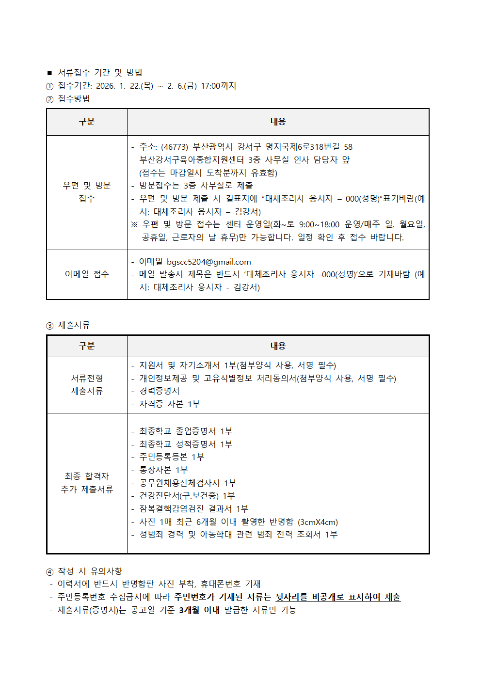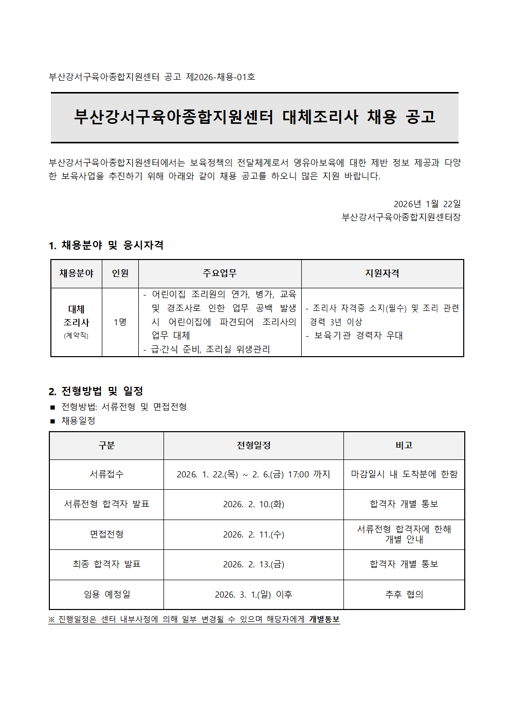 붙임 1_ 부산강서구육아종합지원센터 대체조리사 채용 공고문.hwp
