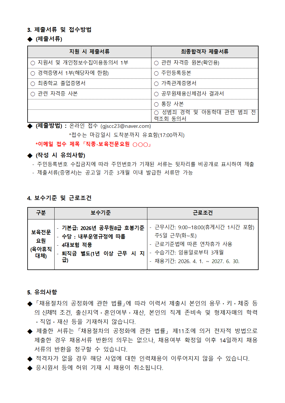 금정육종지26-015. 붙임1) 보육전문요원(육아휴직 대체) 채용 공고문.hwp