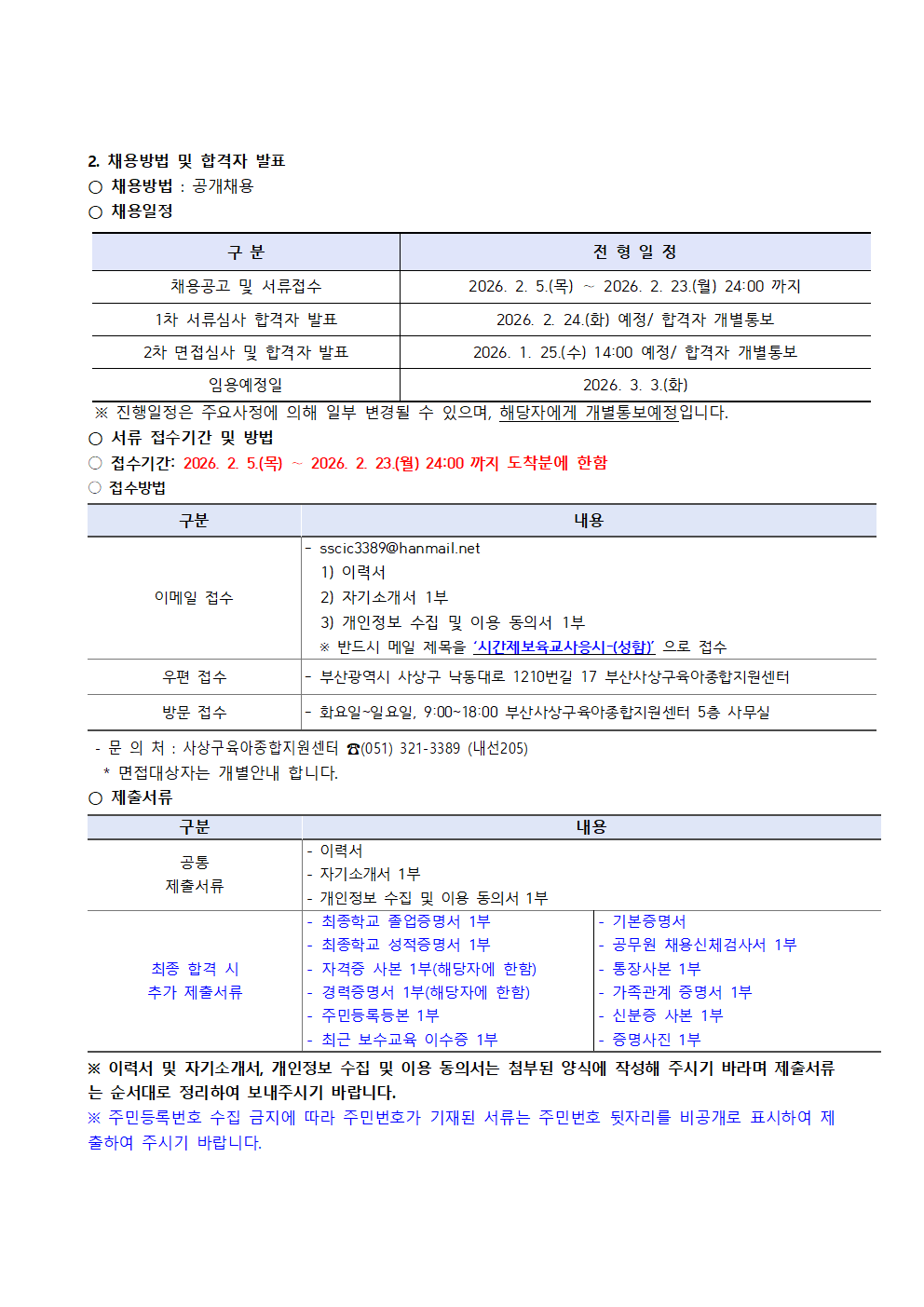 [부산동래구육아종합지원센터] 직원 채용 공고