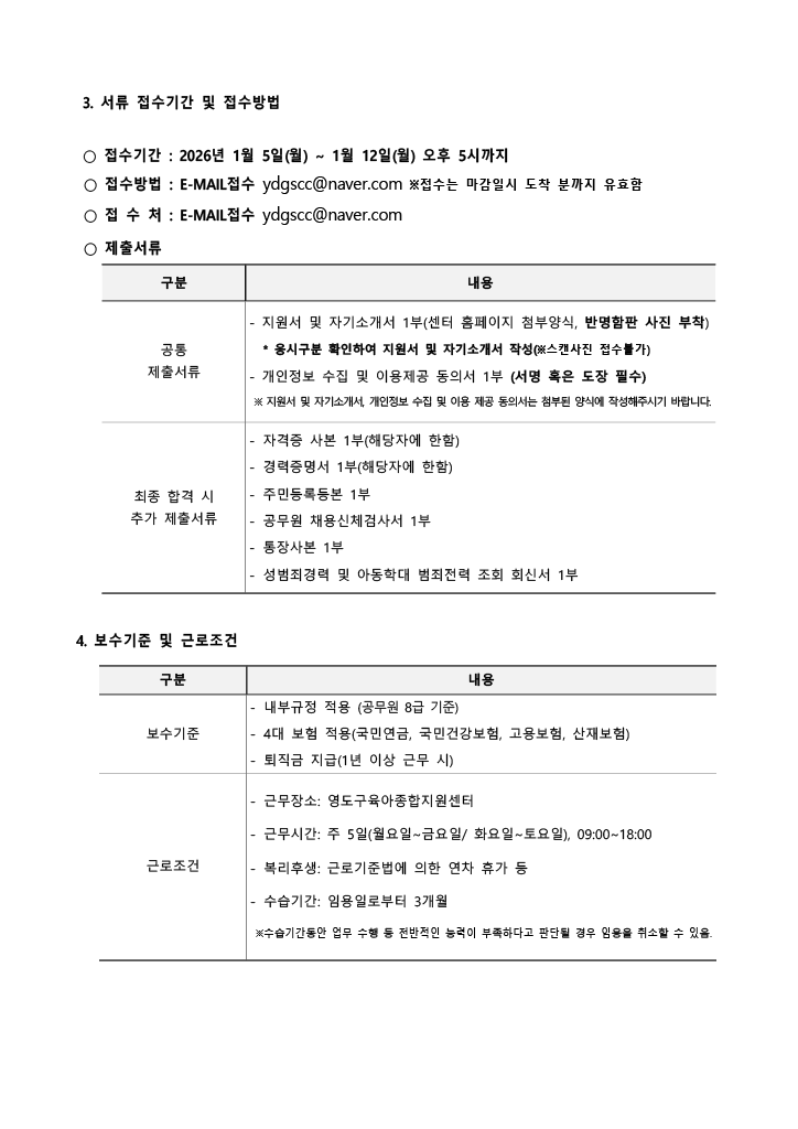 [부산영도구육아종합지원센터] 직원 채용 공고