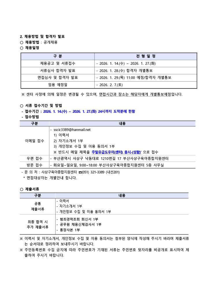 [부산영도구육아종합지원센터] 직원 채용 공고
