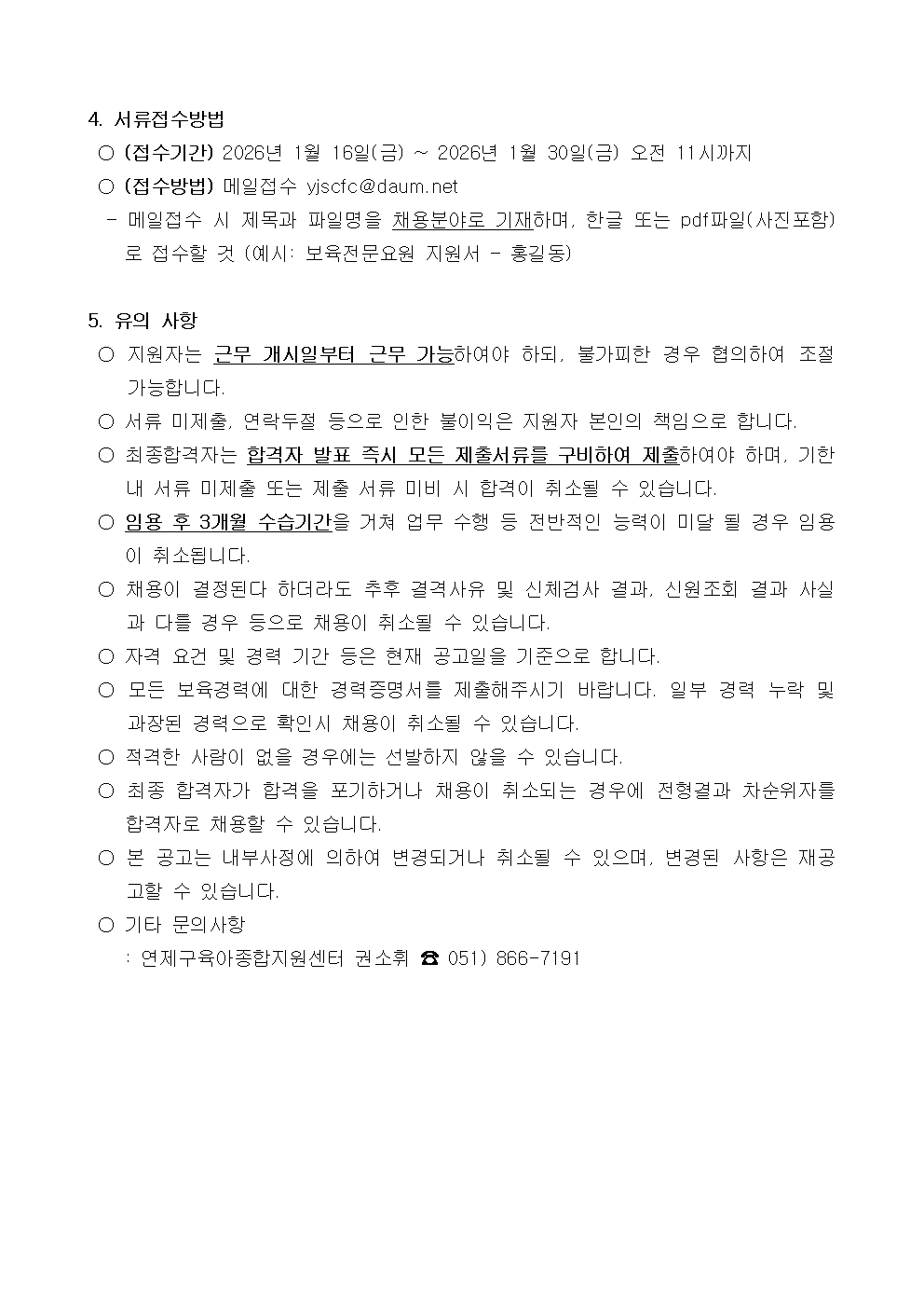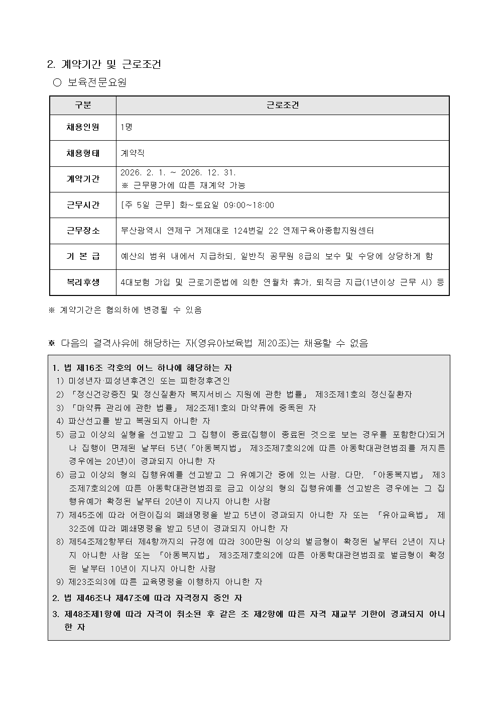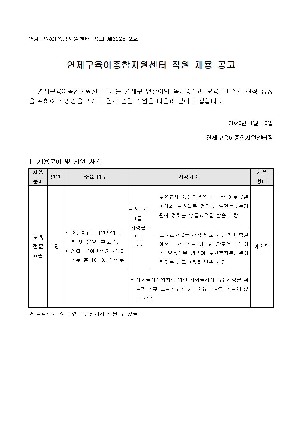 붙임1_연제구육아종합지원센터 직원(보육전문요원) 채용 공고문.hwp