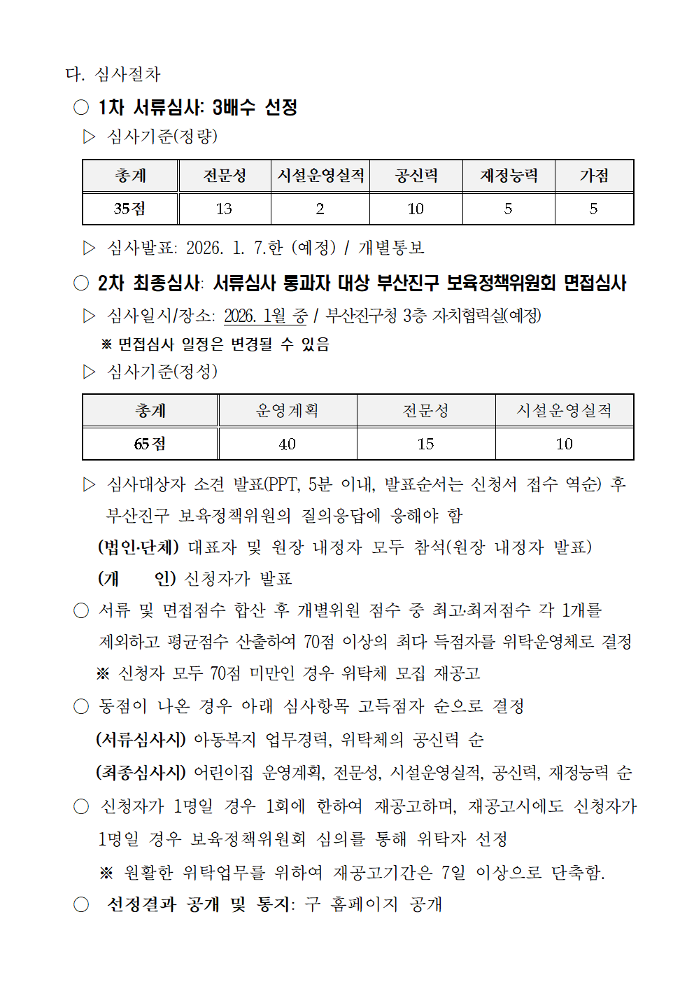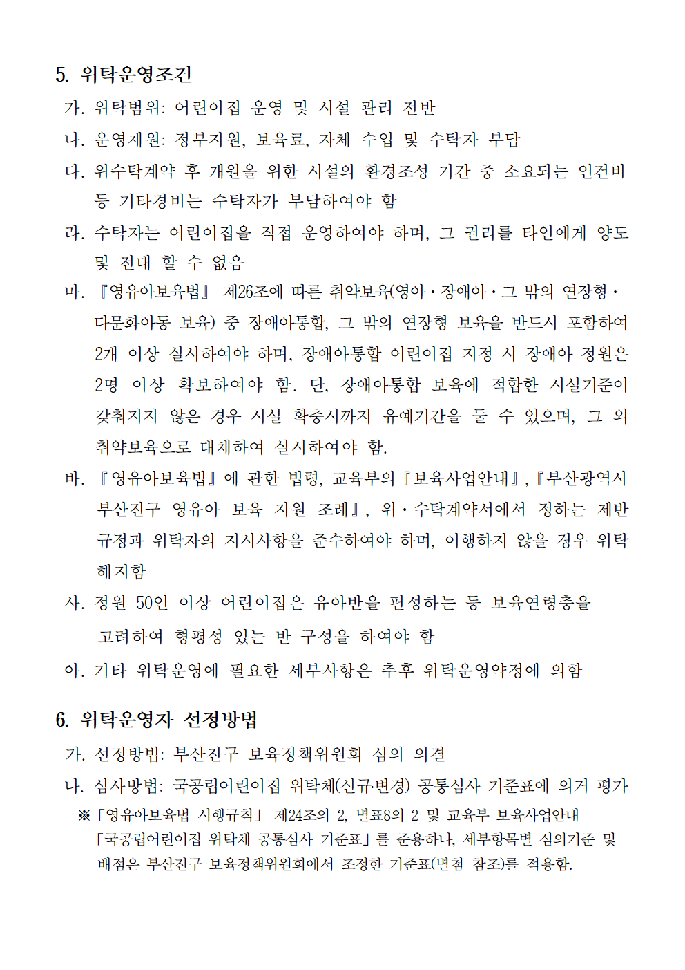 [부산진구] 국공립어린이집 변경위탁 운영체 모집