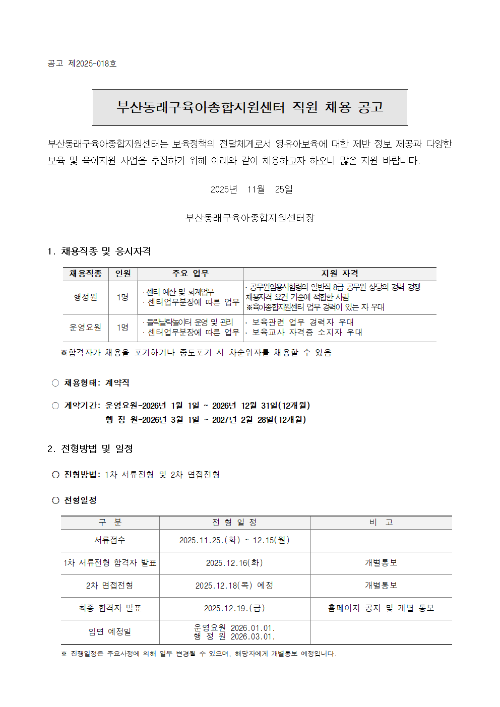 [동래구육아종합지원센터] 직원(운영요원, 행정원) 채용 공고