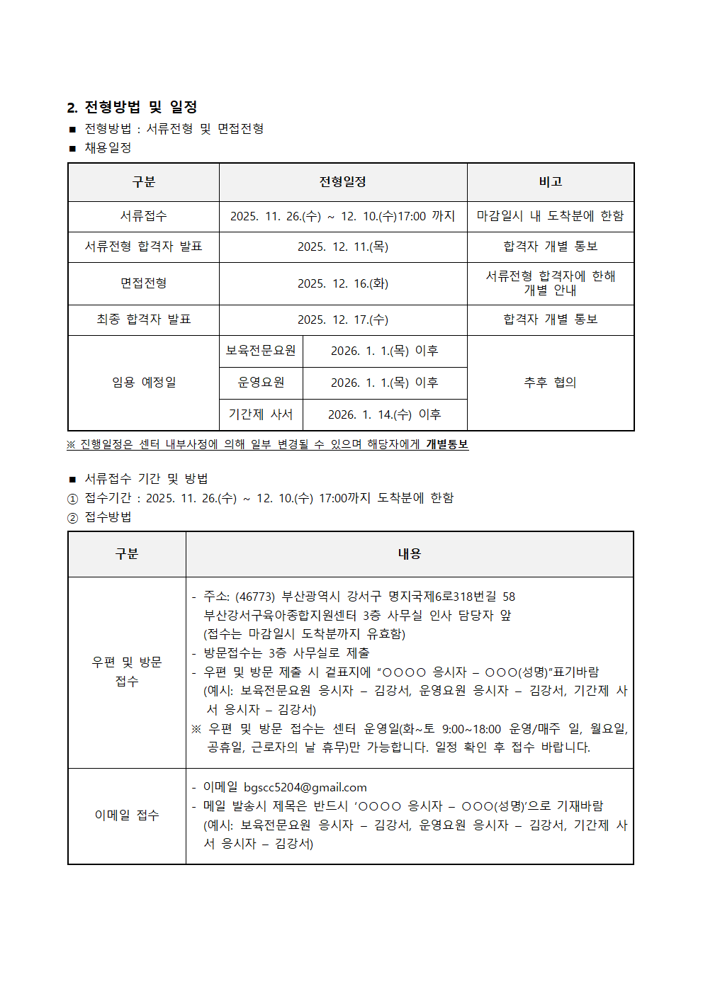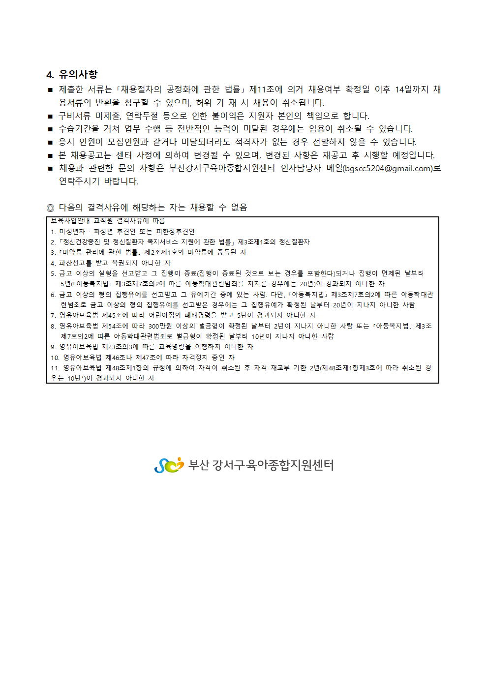 붙임 1_ 부산강서구육아종합지원센터 신규직원(보육전문요원, 운영요원, 기간제 사서) 채용 공고문.hwp