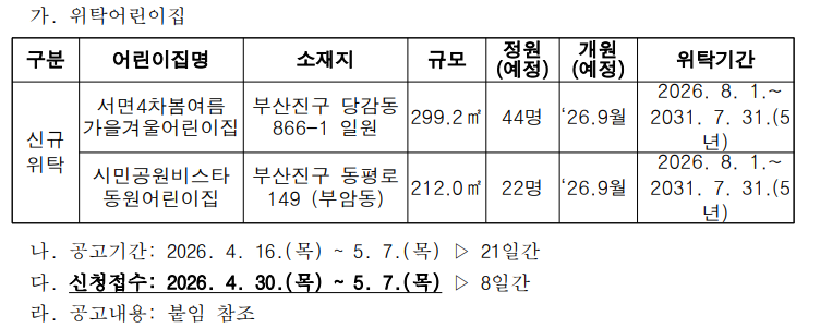 [부산진구] 국공립어린이집 신규위탁 운영체 모집
