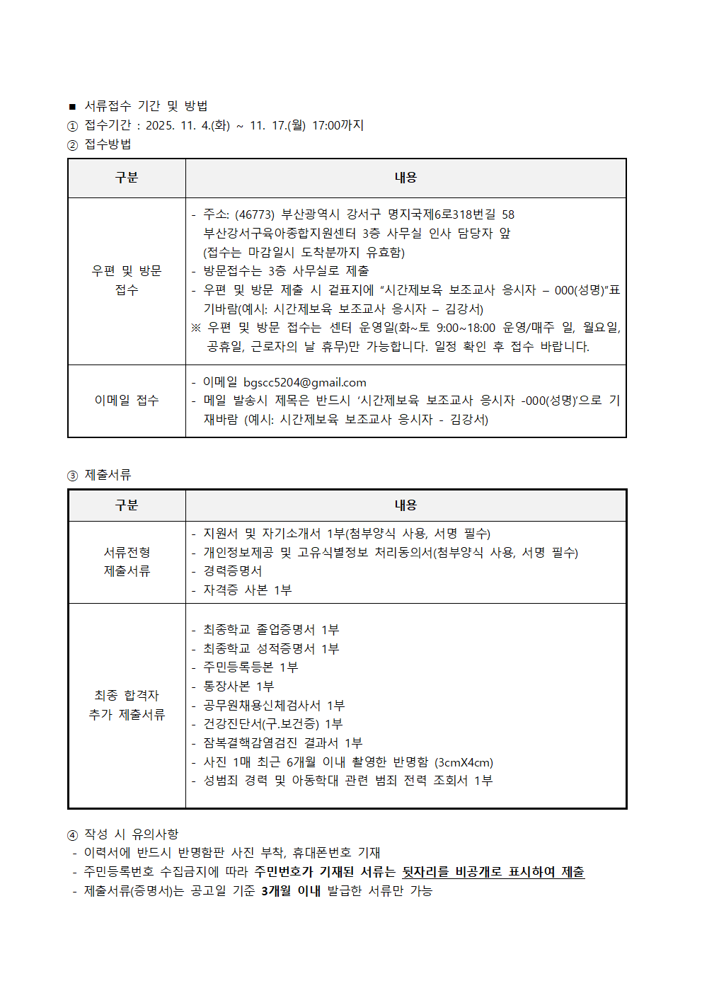 붙임 1_ 부산강서구육아종합지원센터 시간제보육 보조교사 채용 공고문.hwp