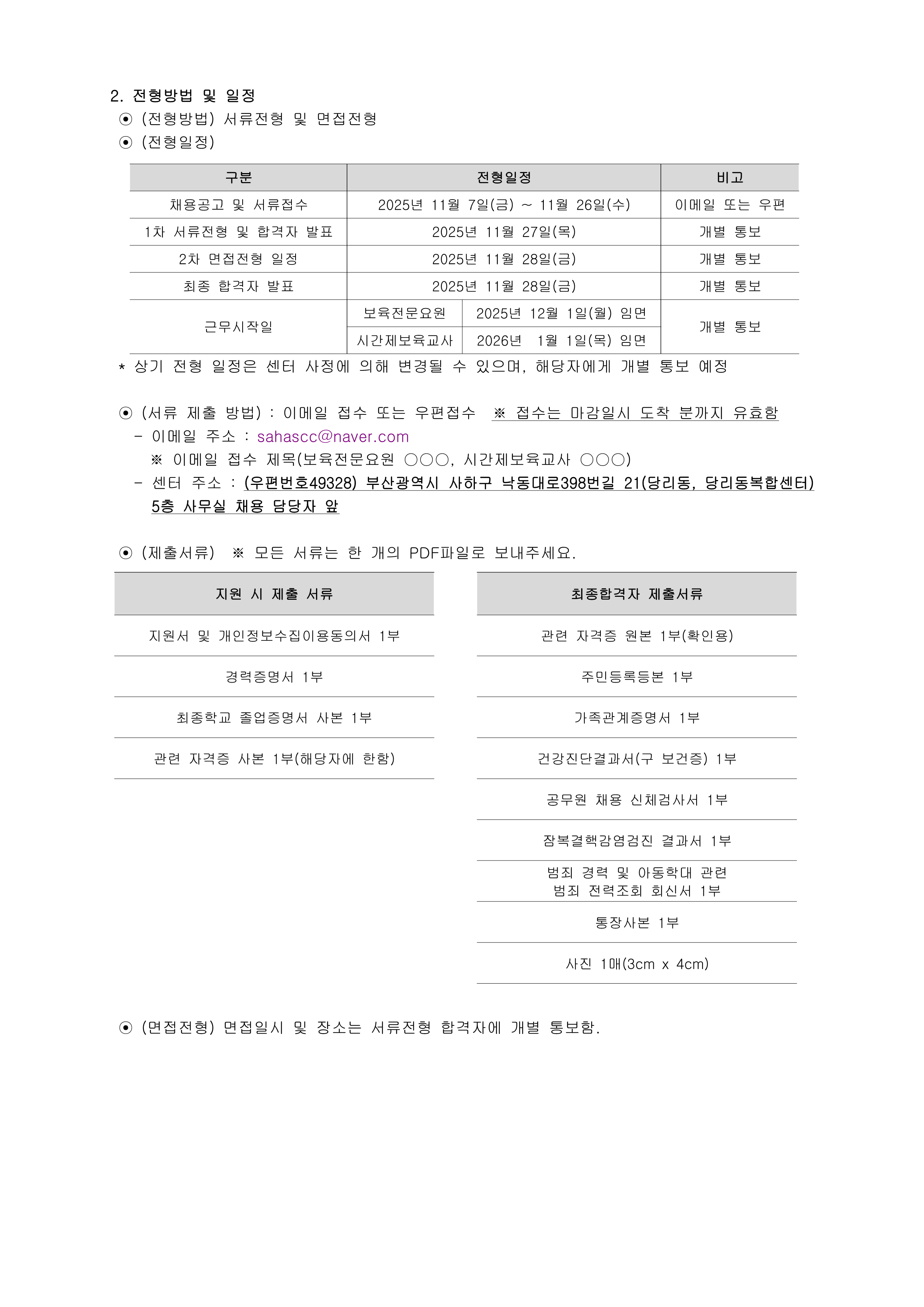 [사하구육아종합지원센터] 직원 채용 공고