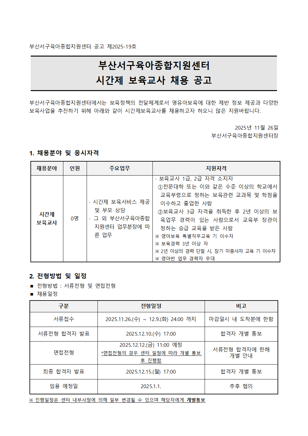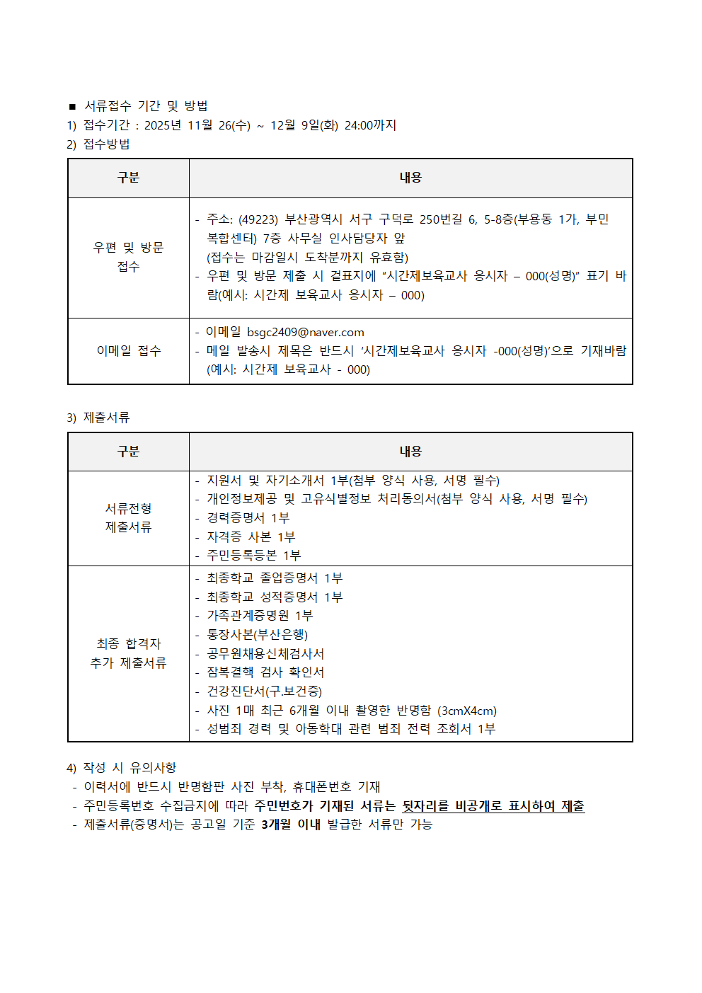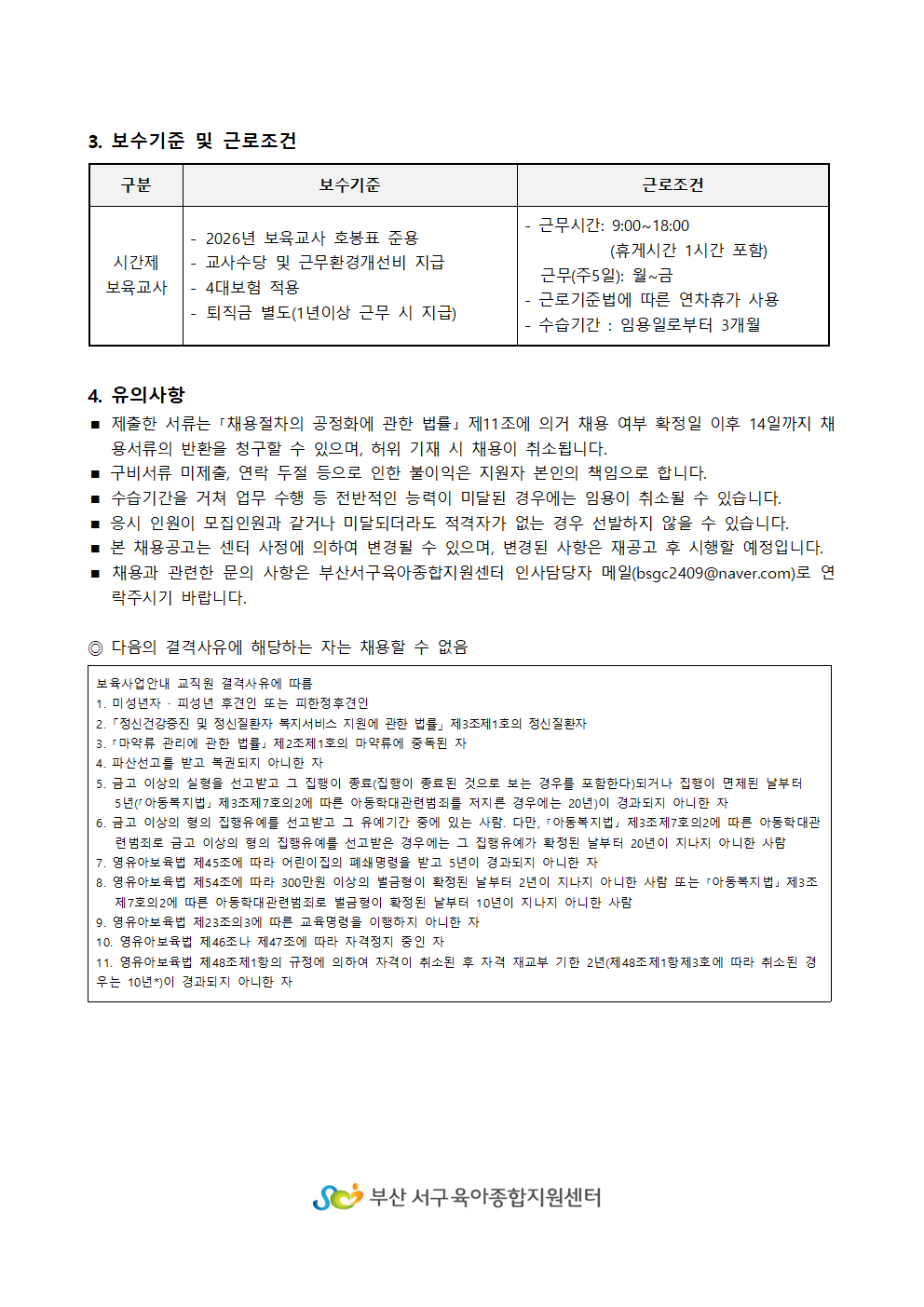 붙임1.부산서구육아종합지원센터 시간제보육교사 채용 공고문.hwp