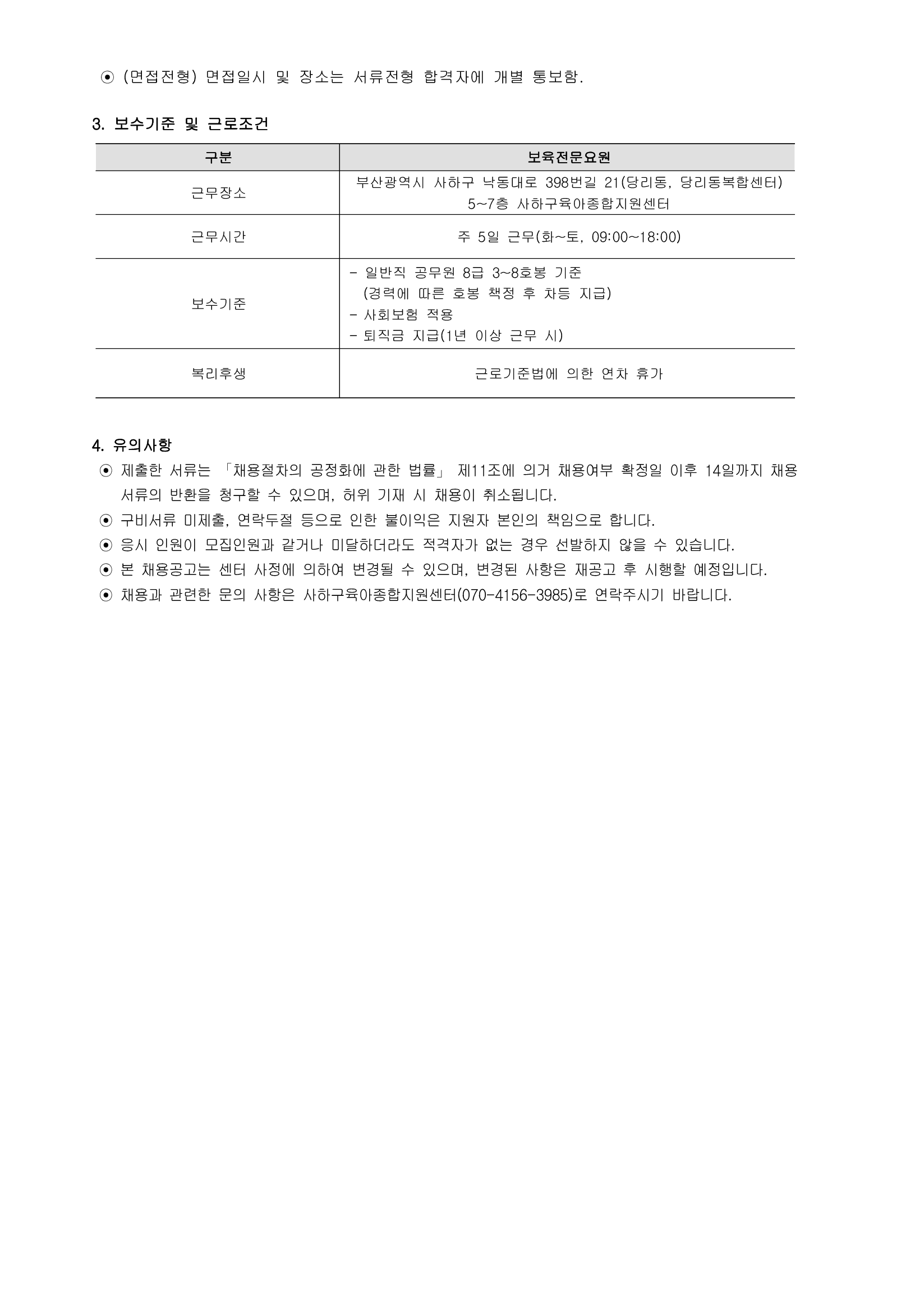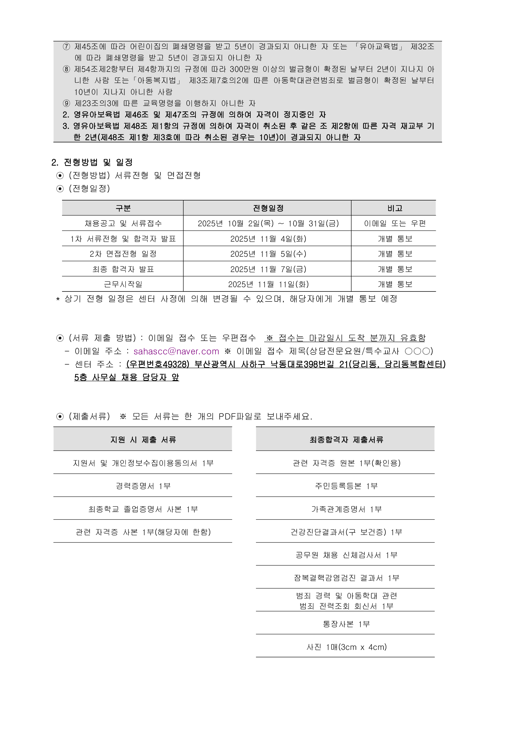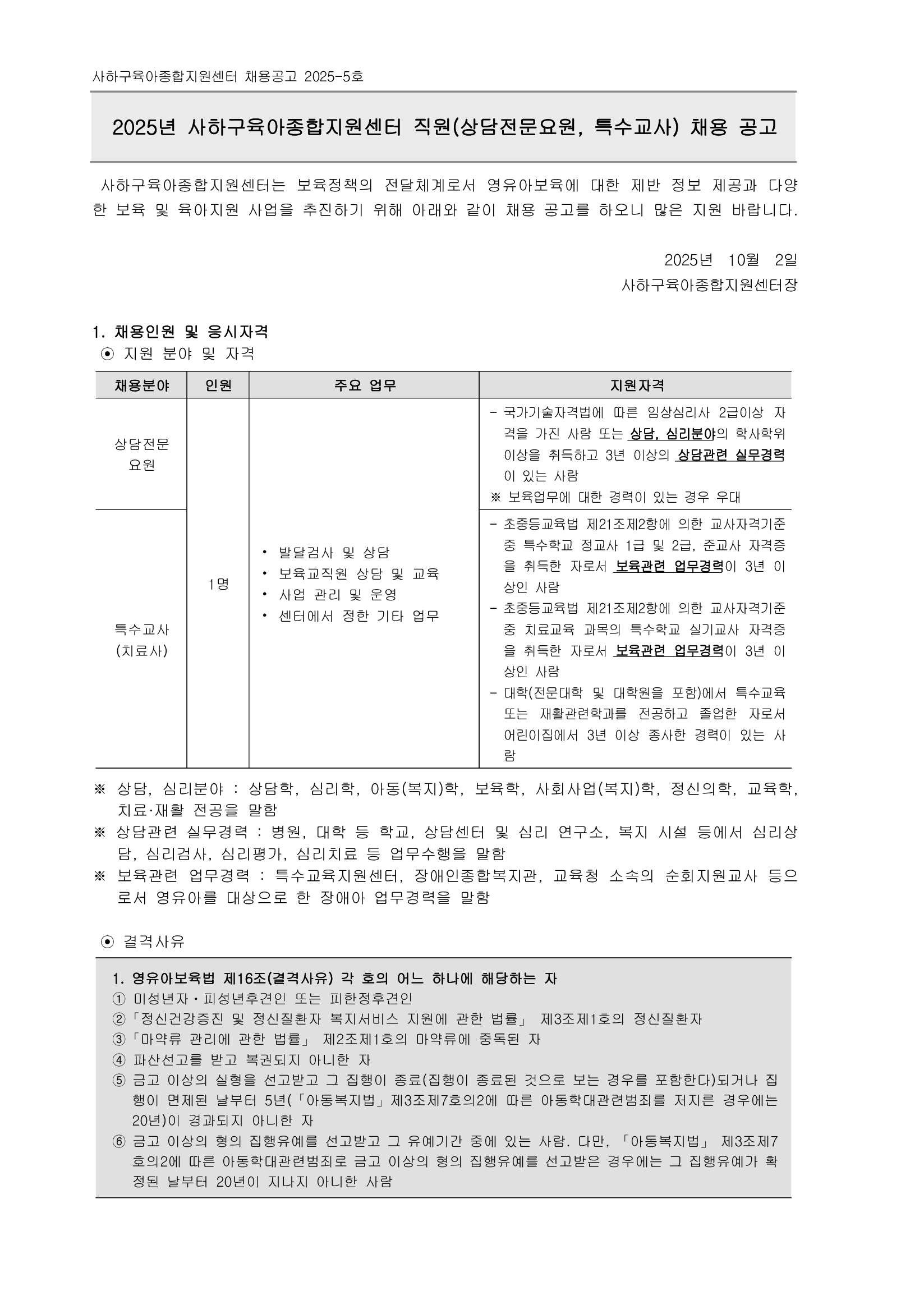 [사하육아종합지원센터] 직원(상담전문요원, 특수교사) 채용 공고(기간연장)