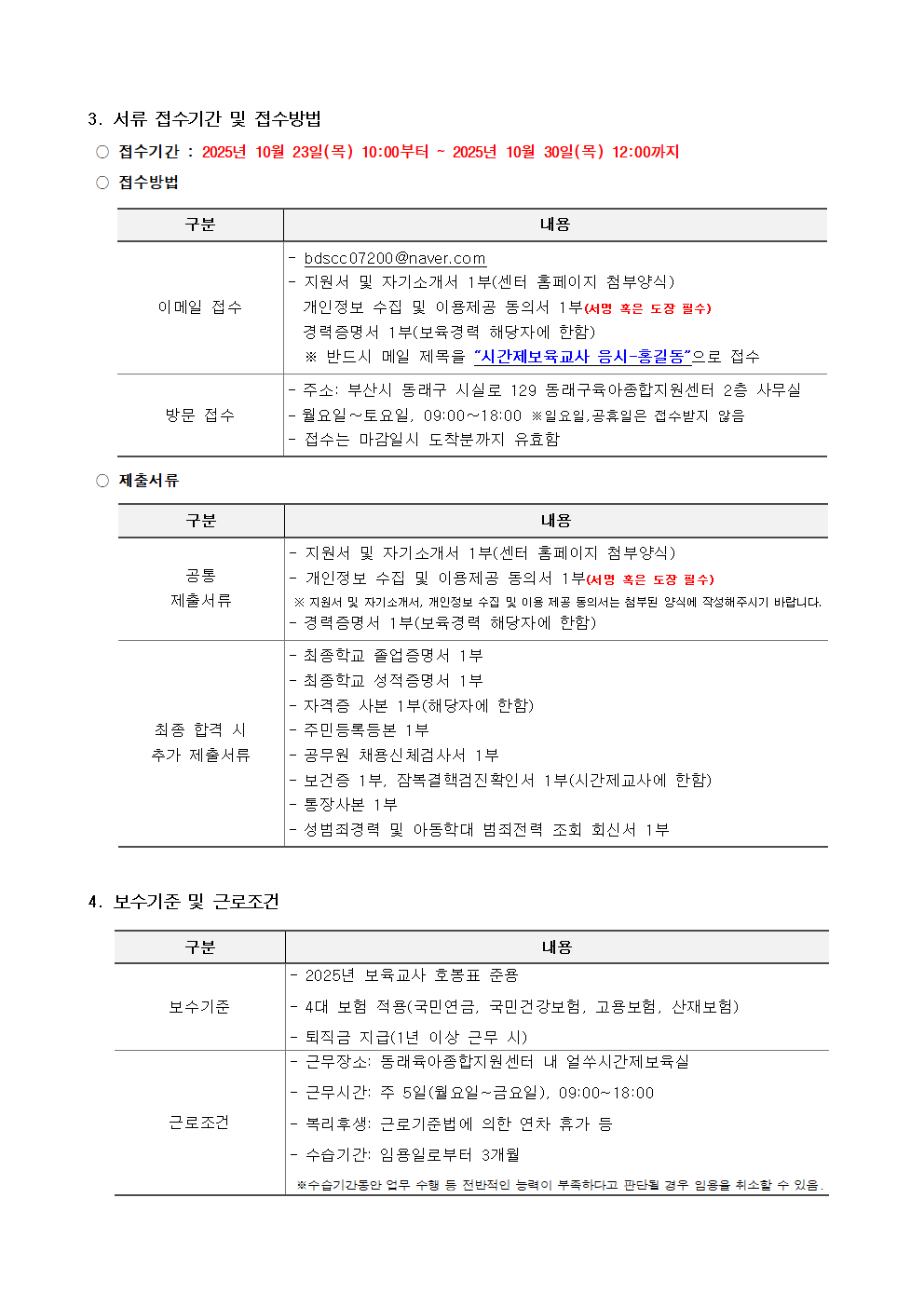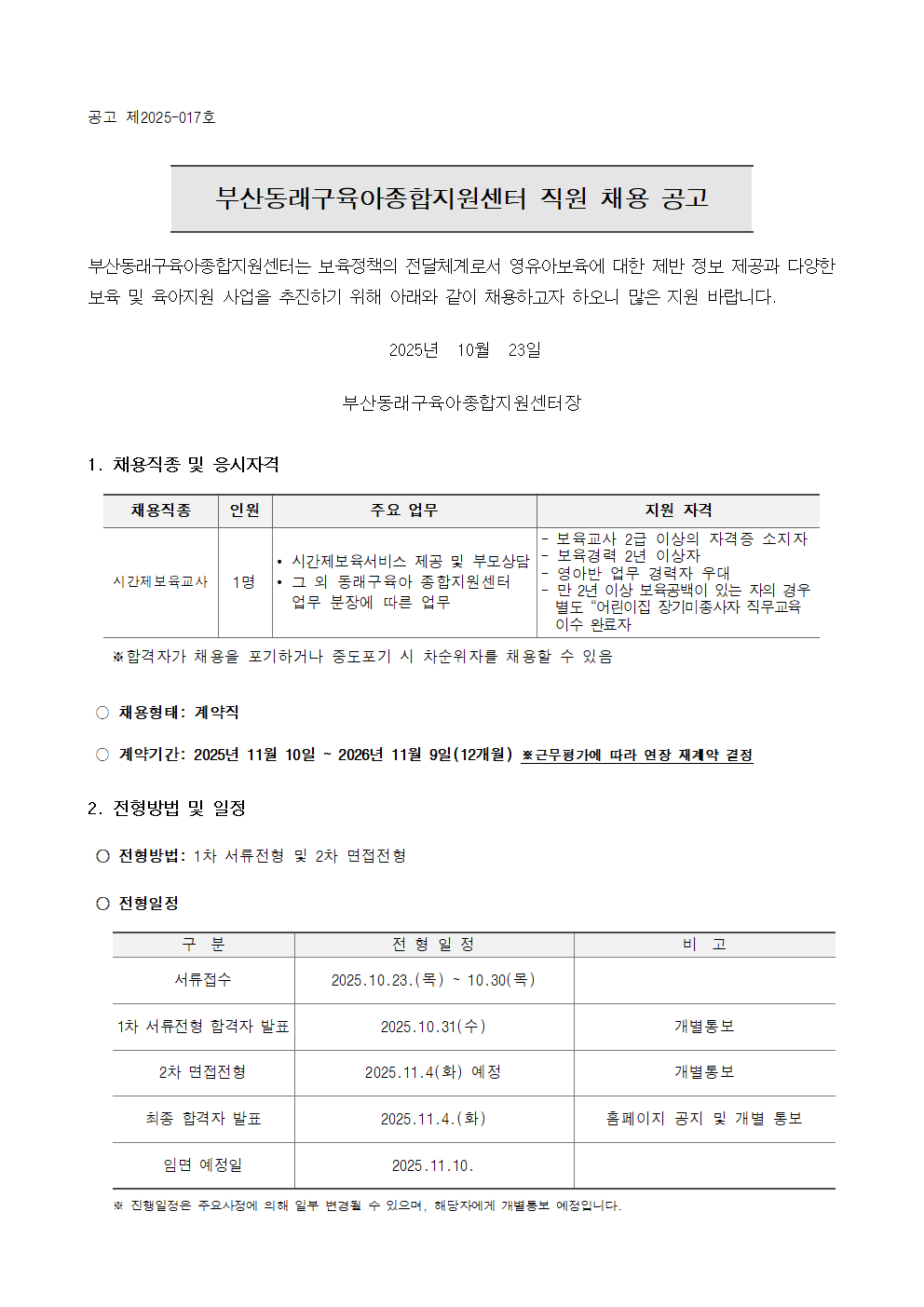 [동래구육아종합지원센터] 직원(시간제보육교사) 채용 공고