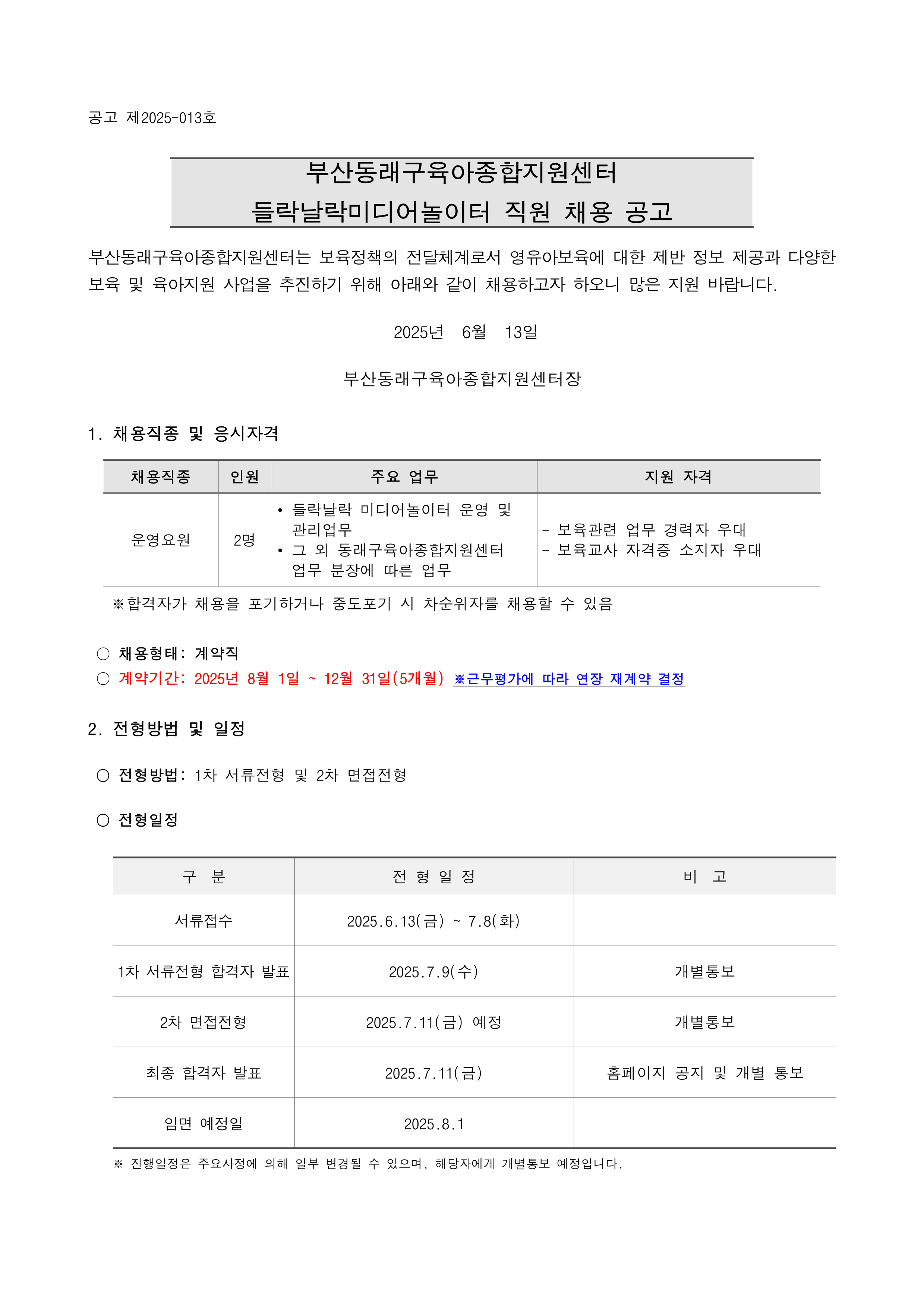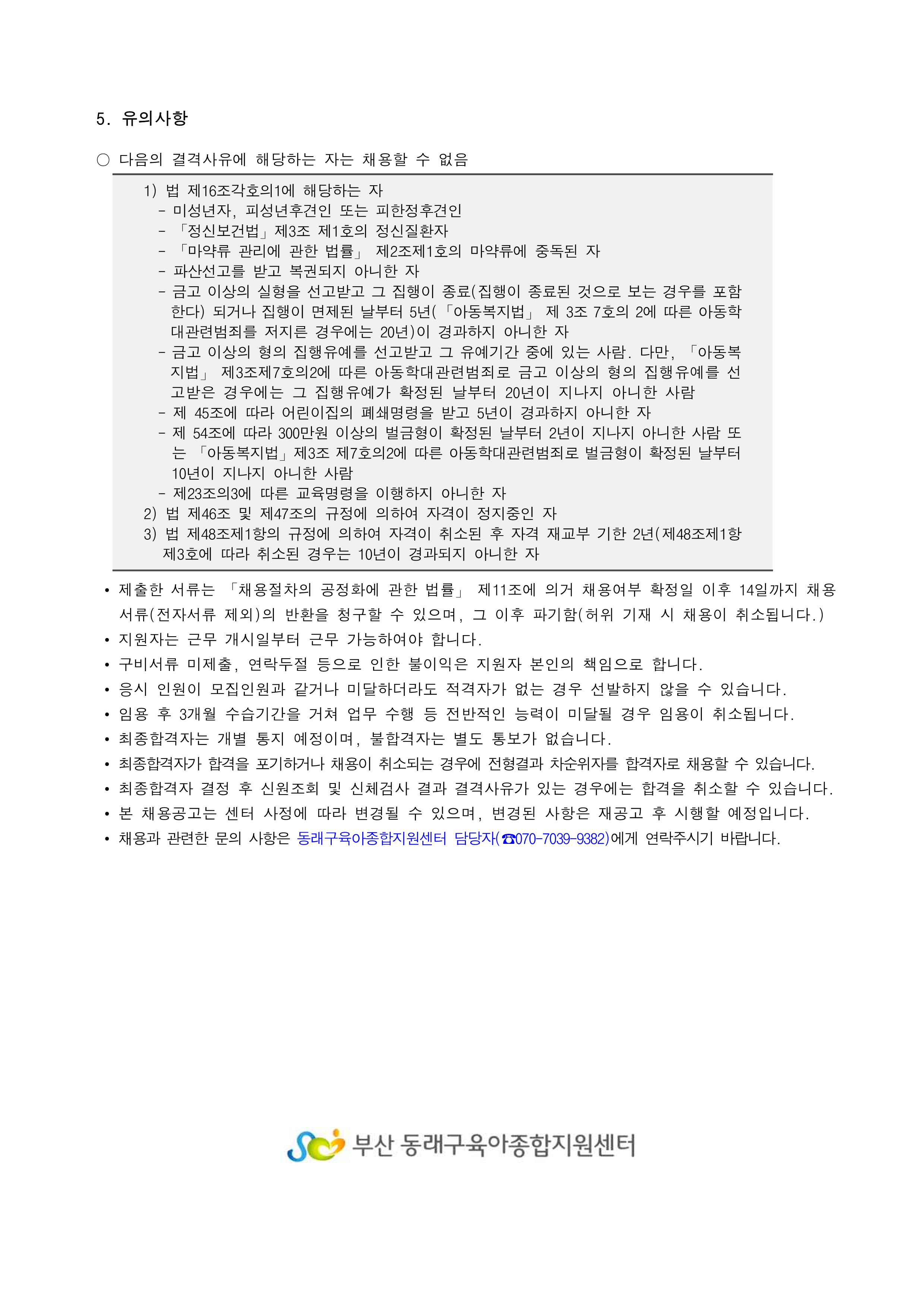 [동래구육종합지원센터] 직원 채용 공고