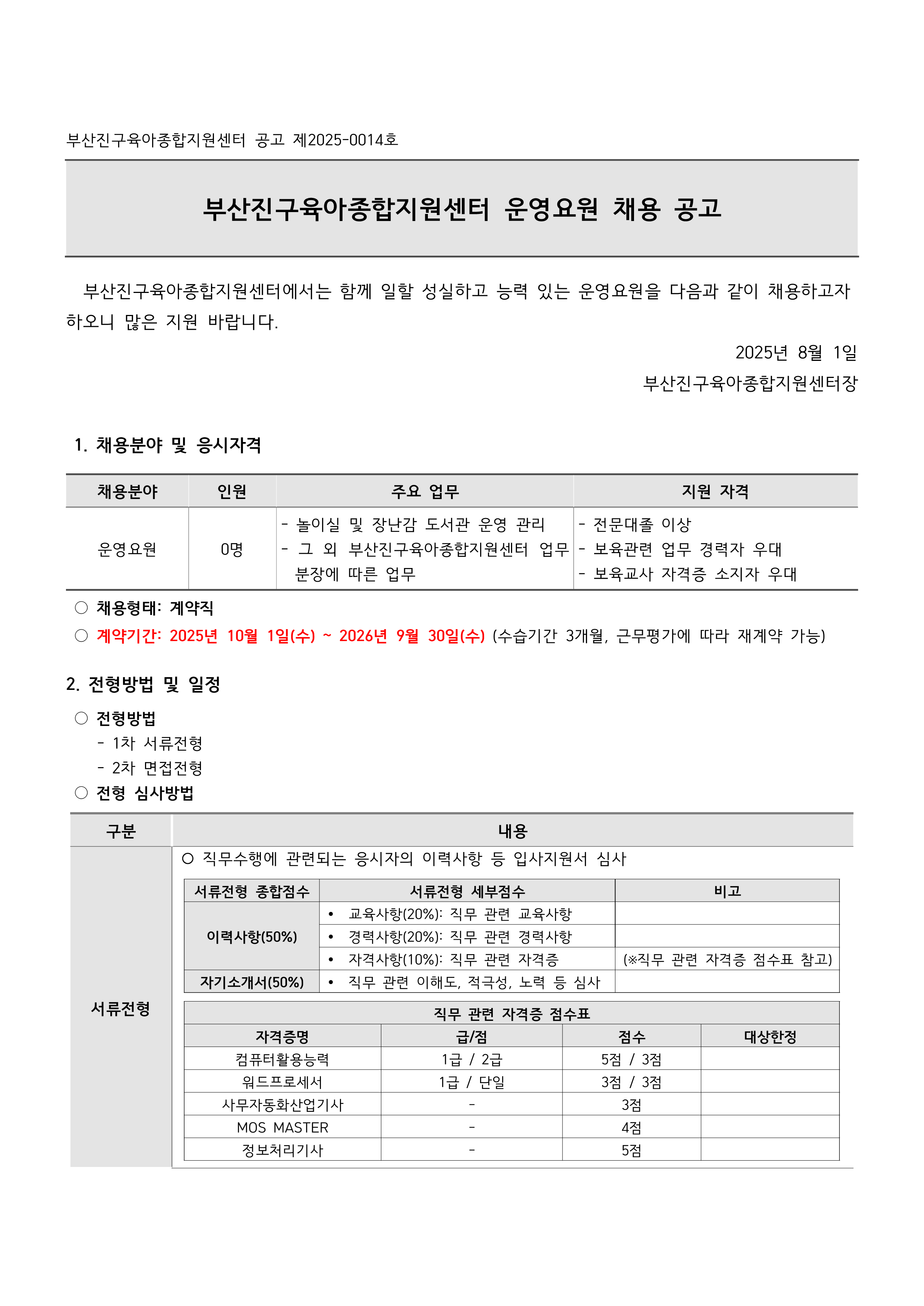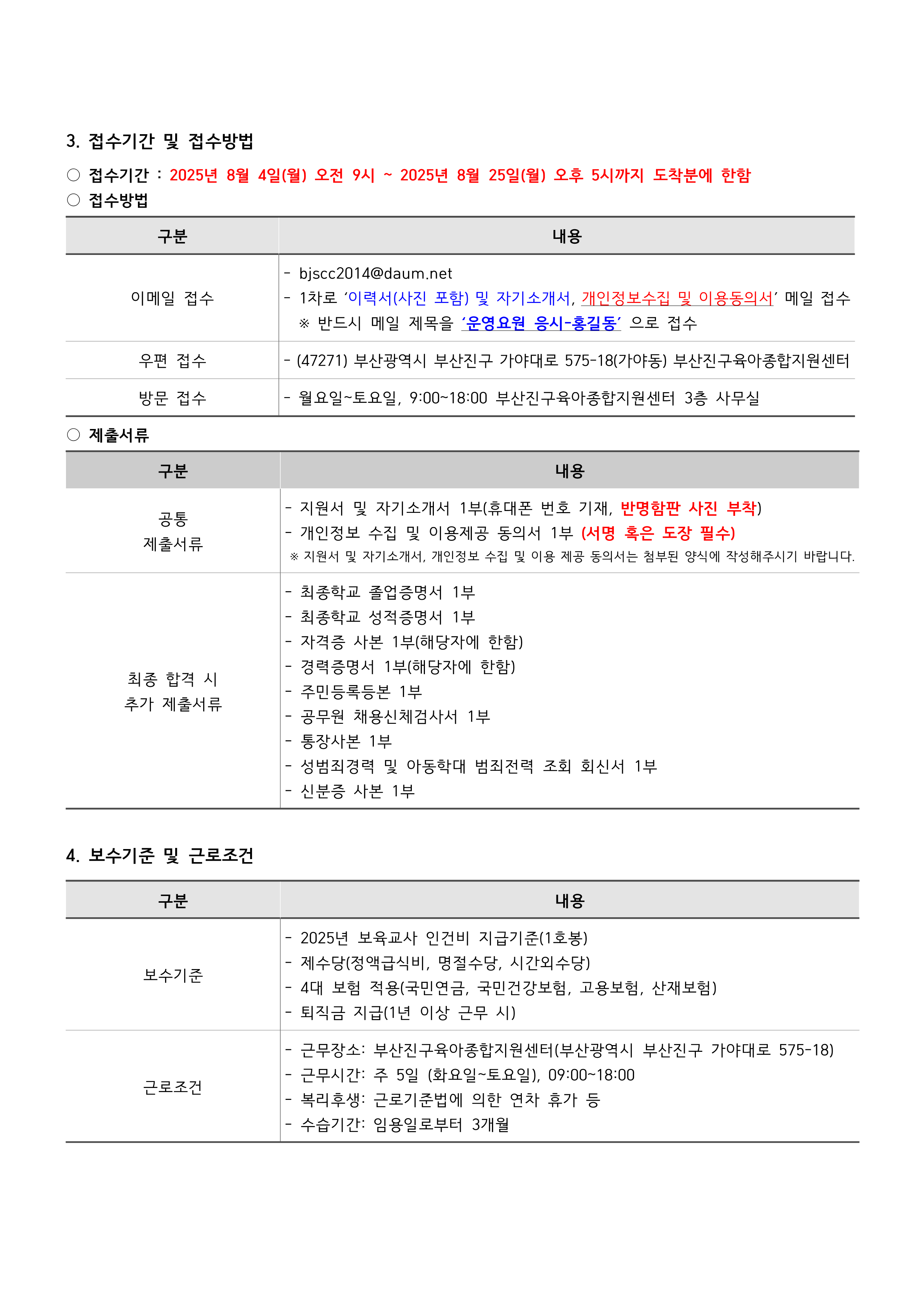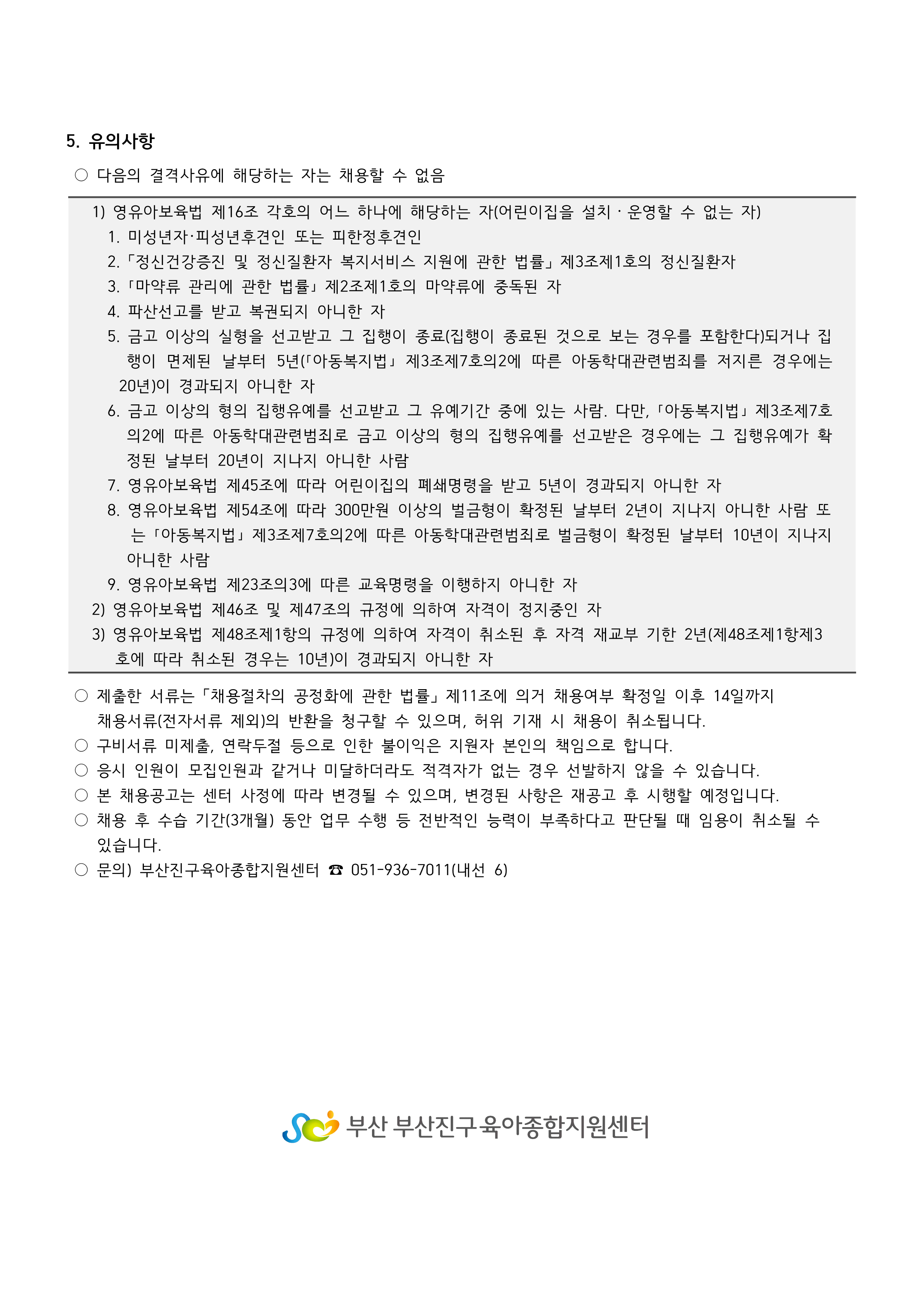 [부산진구육아종합지원센터] 운영요원 채용공고