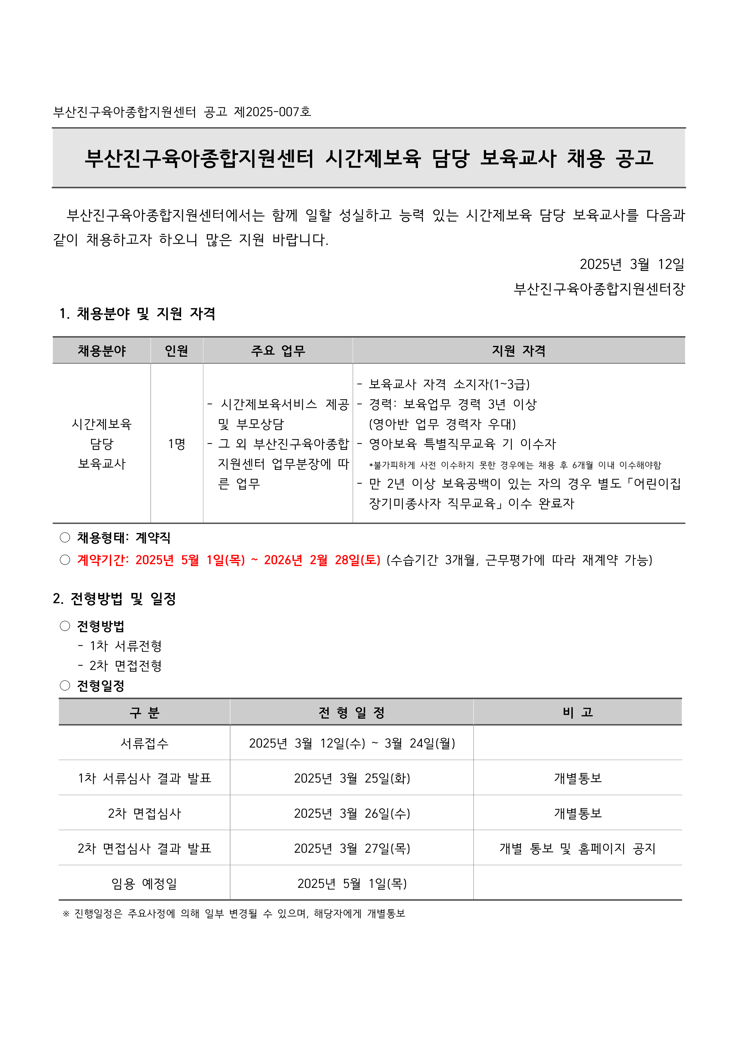 [동래구육종합지원센터] 직원 채용 공고