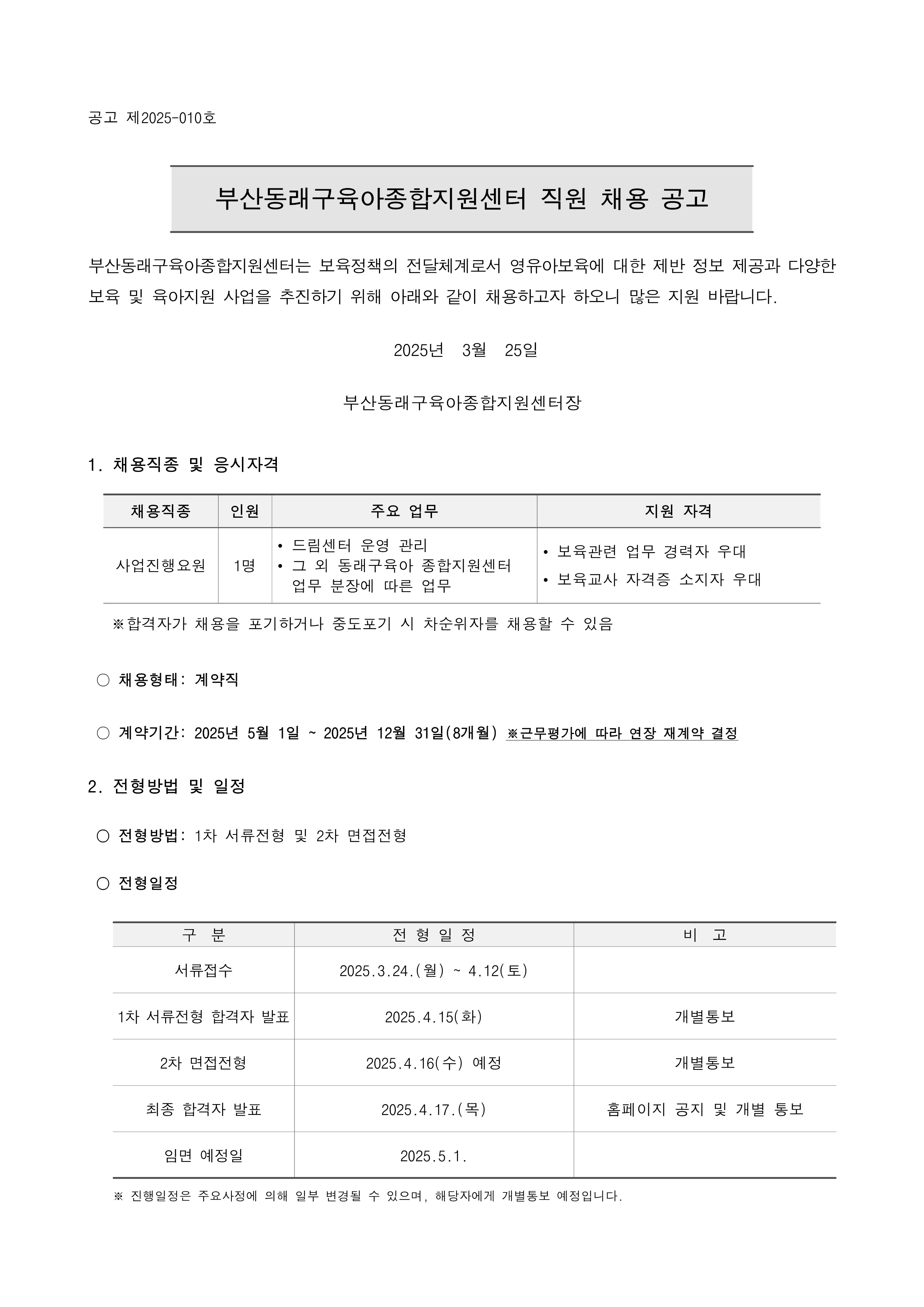[동래구육종합지원센터] 직원 채용 공고