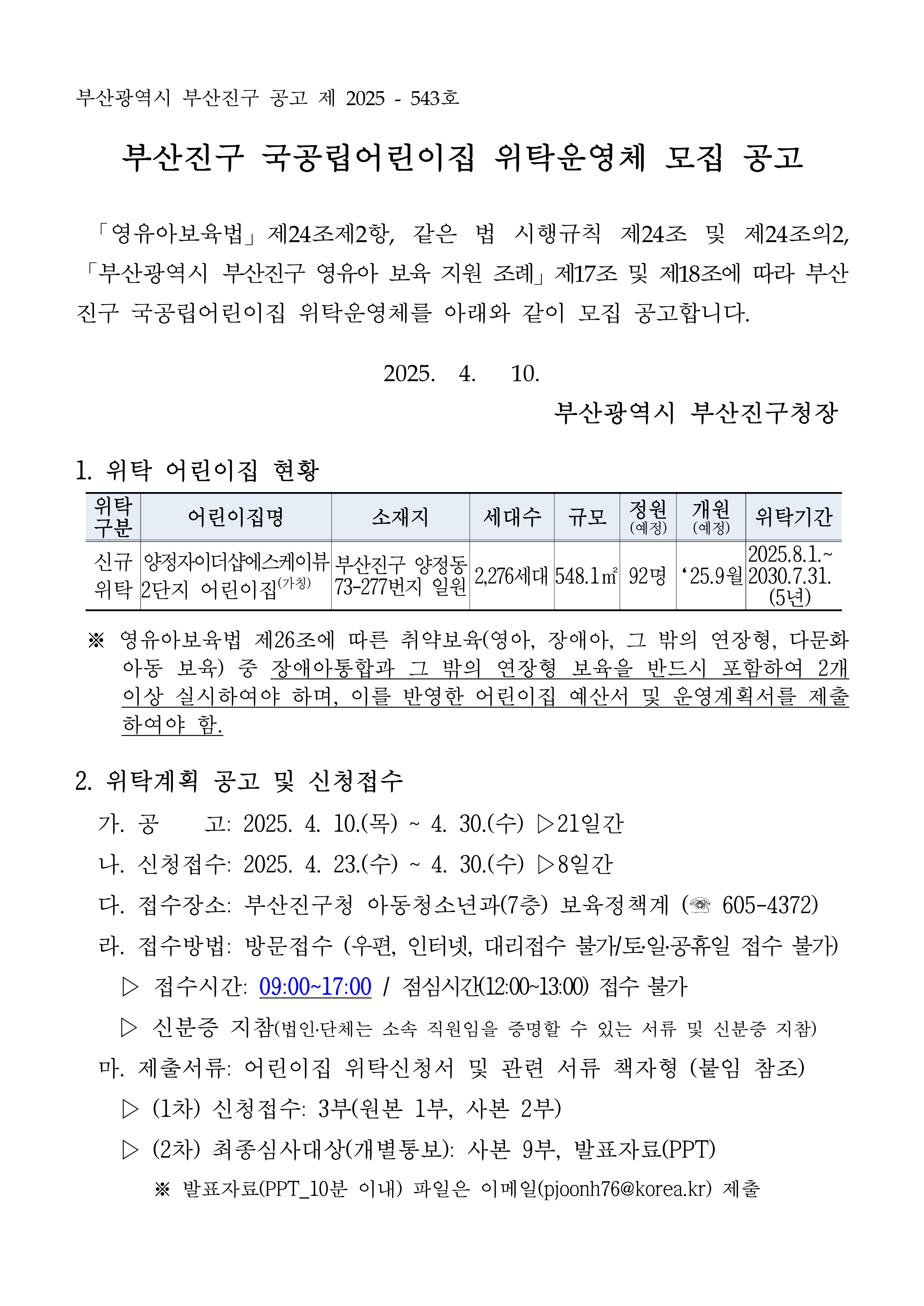 부산진구 국공립어린이집 위탁운영체 모집공고