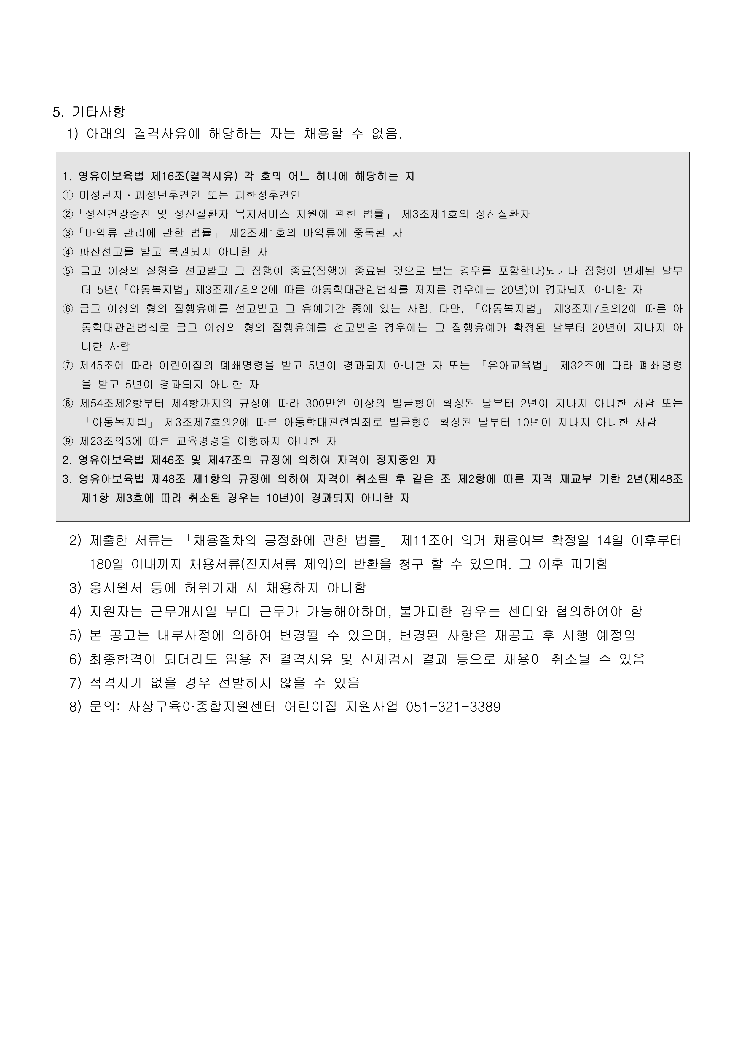 [사상구육종합지원센터] 직원 채용 공고